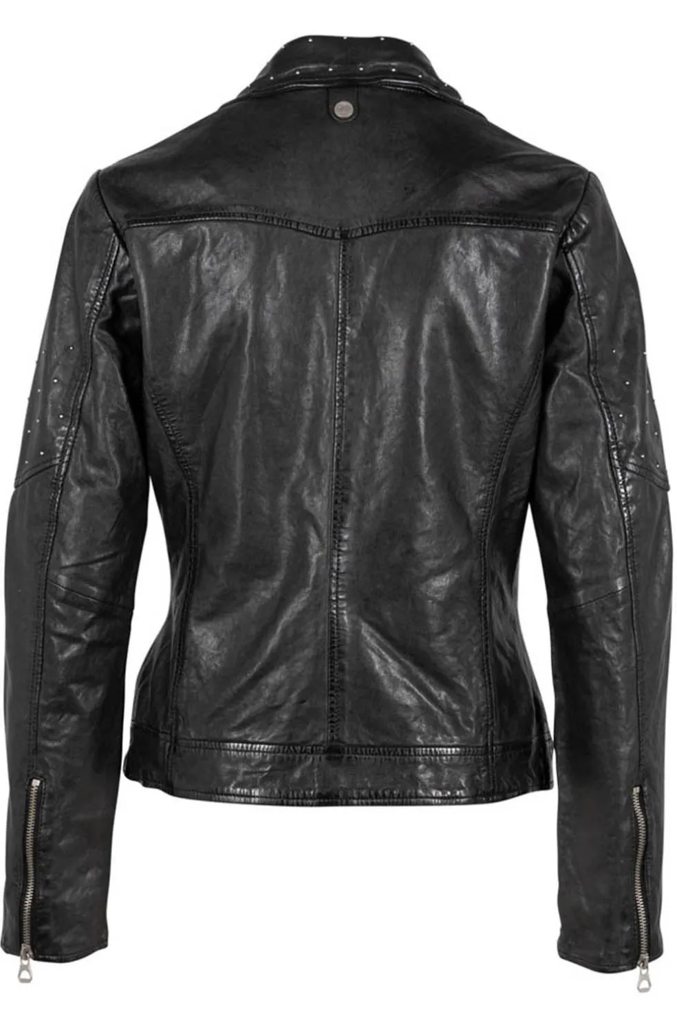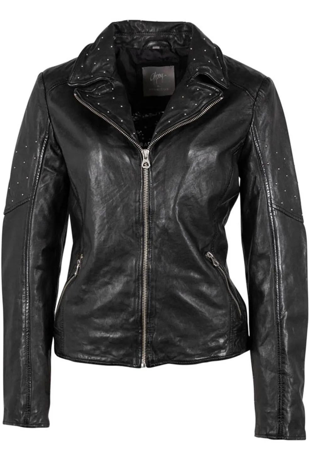 Presentamos la cazadora de cuero negra de Gipsy, una declaración de estilo y personalidad. Con un diseño audaz adornado con tachuelas en los brazos y el cuello, esta prenda es perfecta para quienes buscan un look distintivo. Equipado con dos bolsillos laterales con cremallera y un bolsillo interior, ofrece funcionalidad sin comprometer el estilo. Los detalles de cremallera en las mangas añaden un toque contemporáneo, convirtiéndola en la elección ideal para cualquier ocasión. Atrévete a destacar con esta cazadora única.
