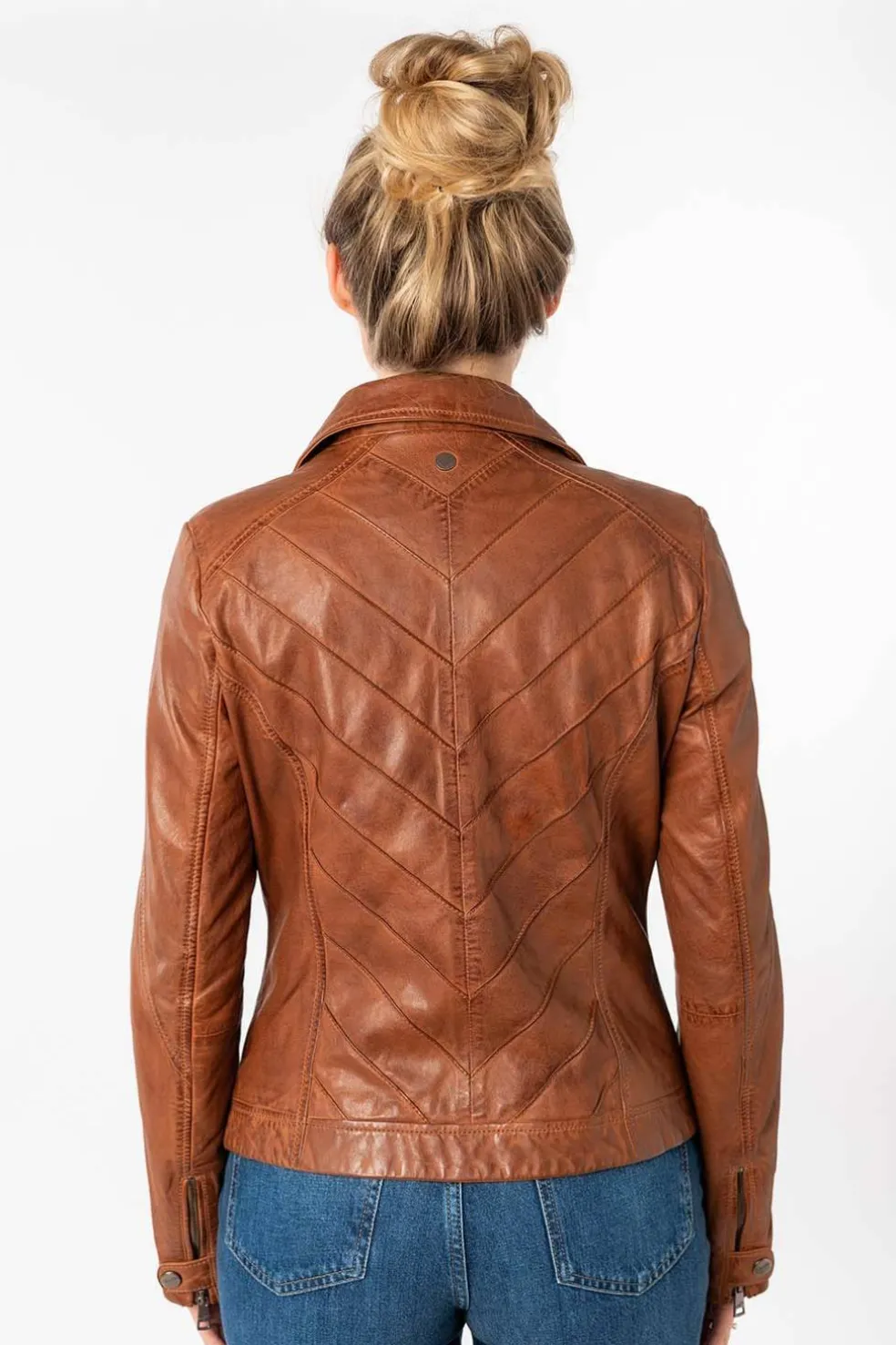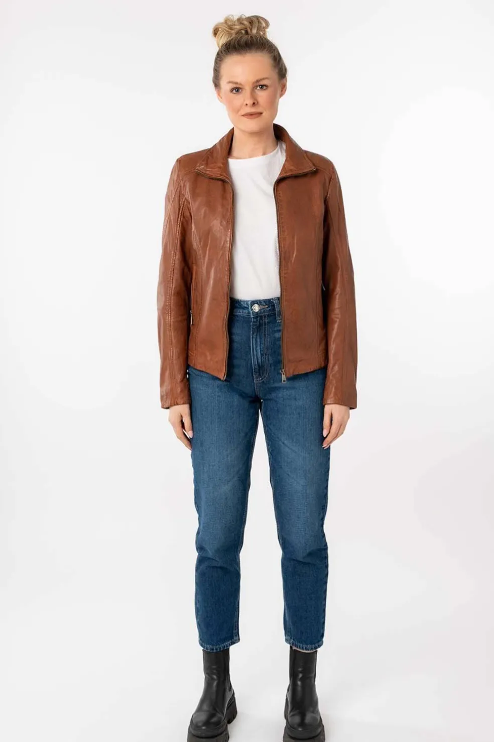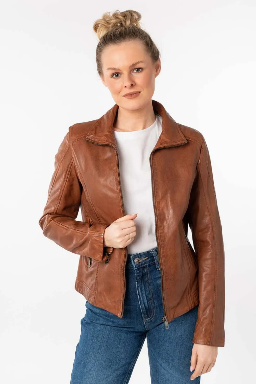 Con un diseño atemporal y lleno de carácter, esta cazadora de cuero en color whiskey es la prenda perfecta para realzar cualquier look. Confeccionada en piel de alta calidad, su tono cálido y acabado suave aportan elegancia y autenticidad.