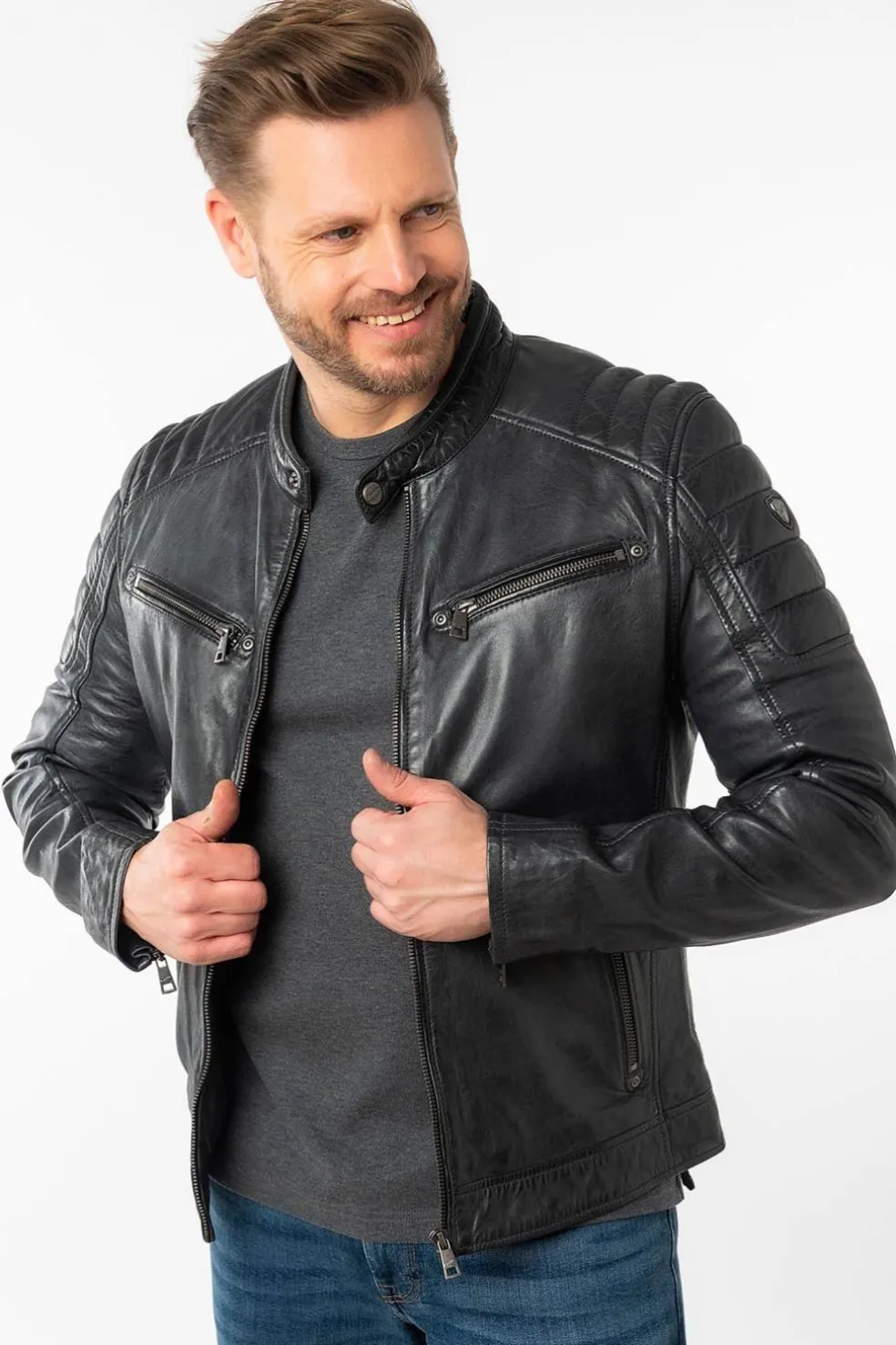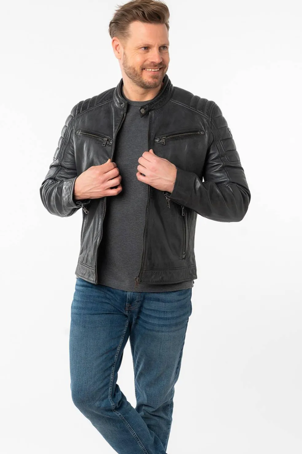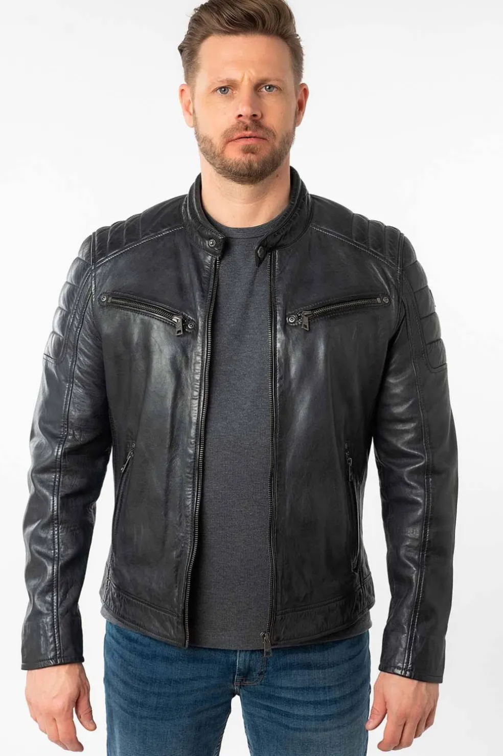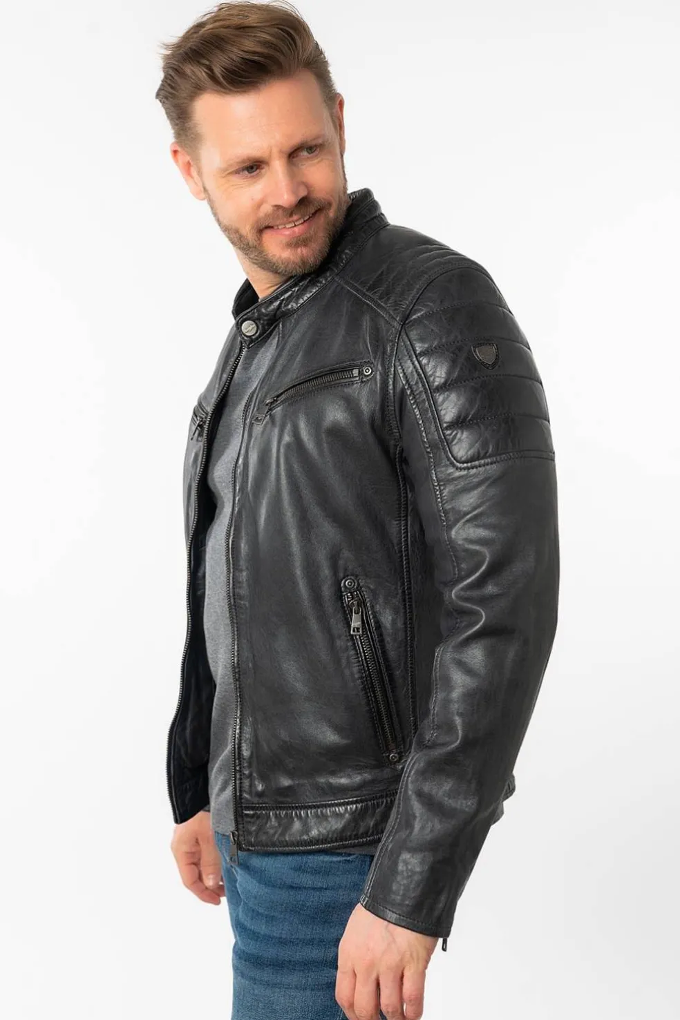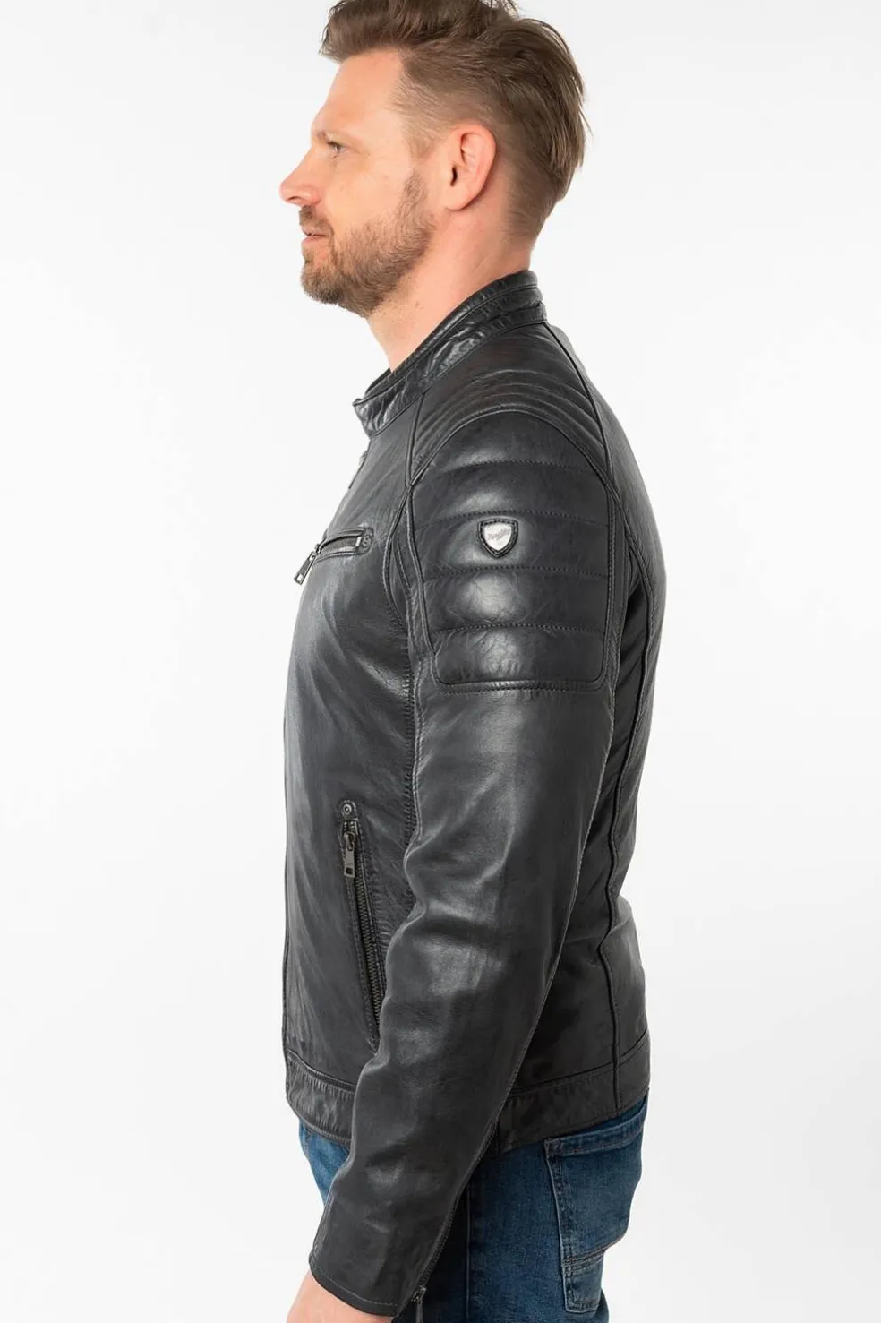 - Costuras acolchadas en los hombros, que refuerzan el carácter motero de la chaqueta.