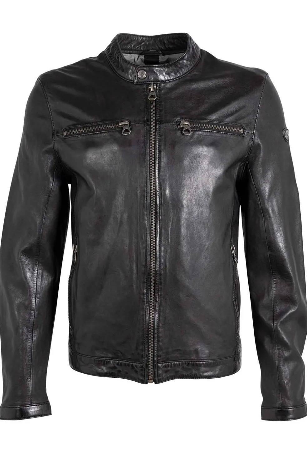 Cazadora biker de estilo motera, piel exterior libre de cromo y forro textil. Tiene 4 bolsillos exteriores y 2 interiores