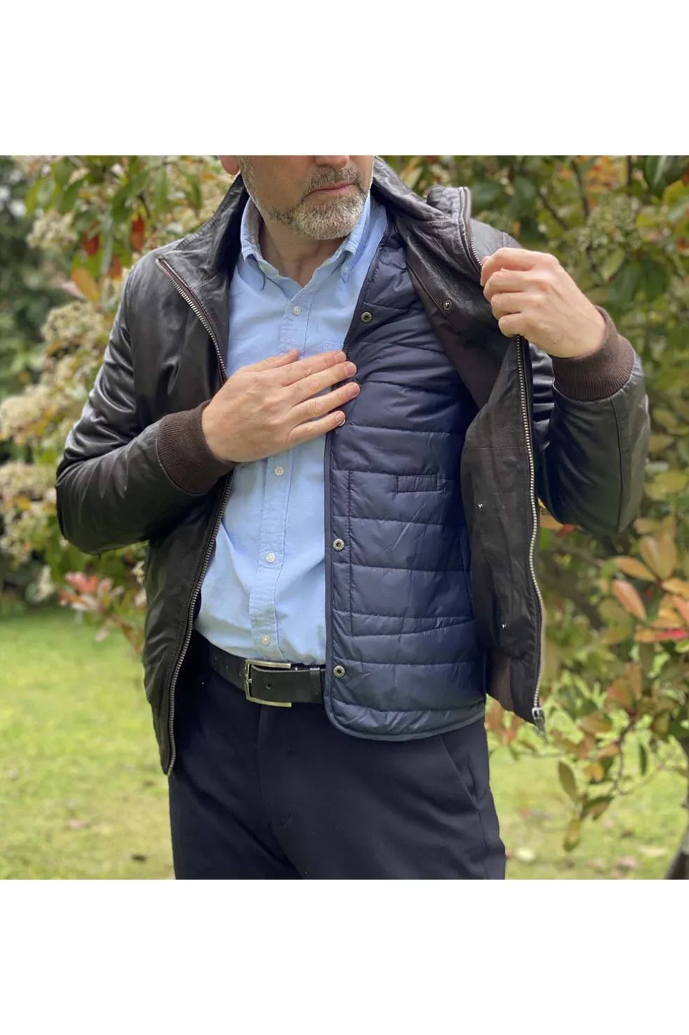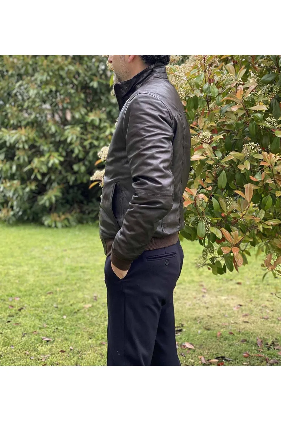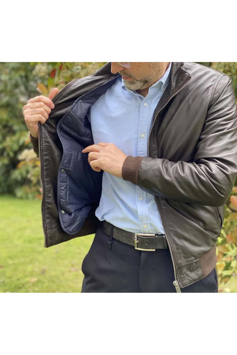 Cazadora de cuero natural, muy suave y ligera en color marrón. Es una parka atemporal con un forro acolchado desmontable.