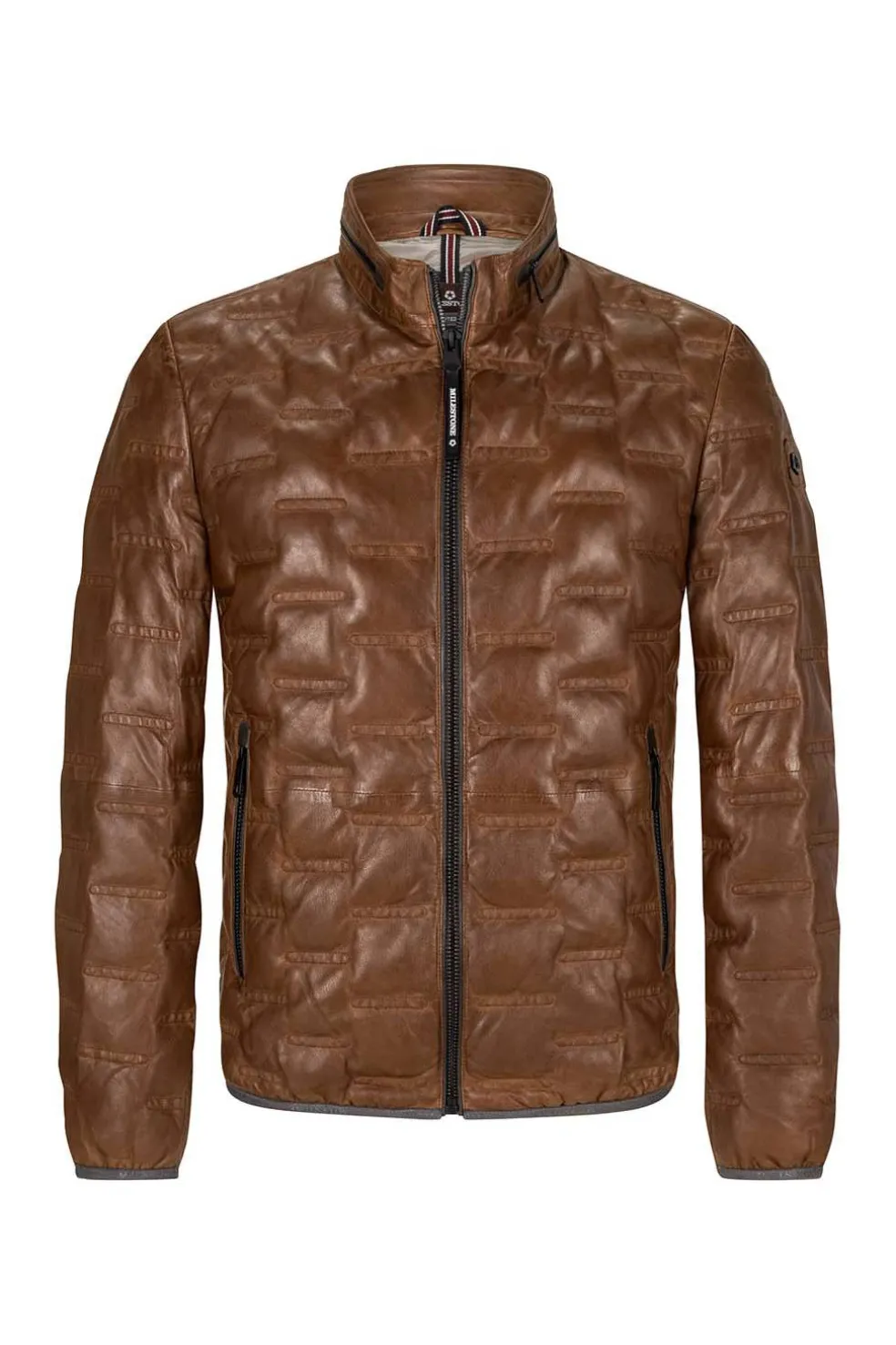 Esta chaqueta de cuero de alta calidad destaca por su aspecto acolchado especial. El modelo con acolchado suave y transpirable convence por su piel de napa igualmente suave, que garantiza comodidad y una agradable sensación de uso. El look se completa con bordes elásticos y prácticos bolsillos con cremallera.