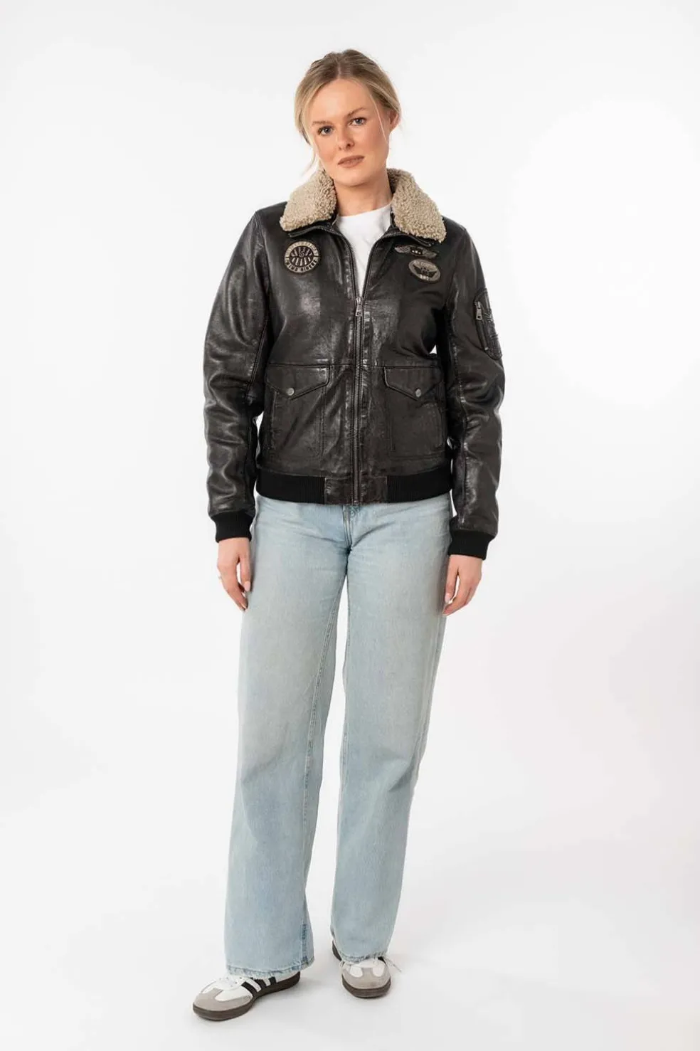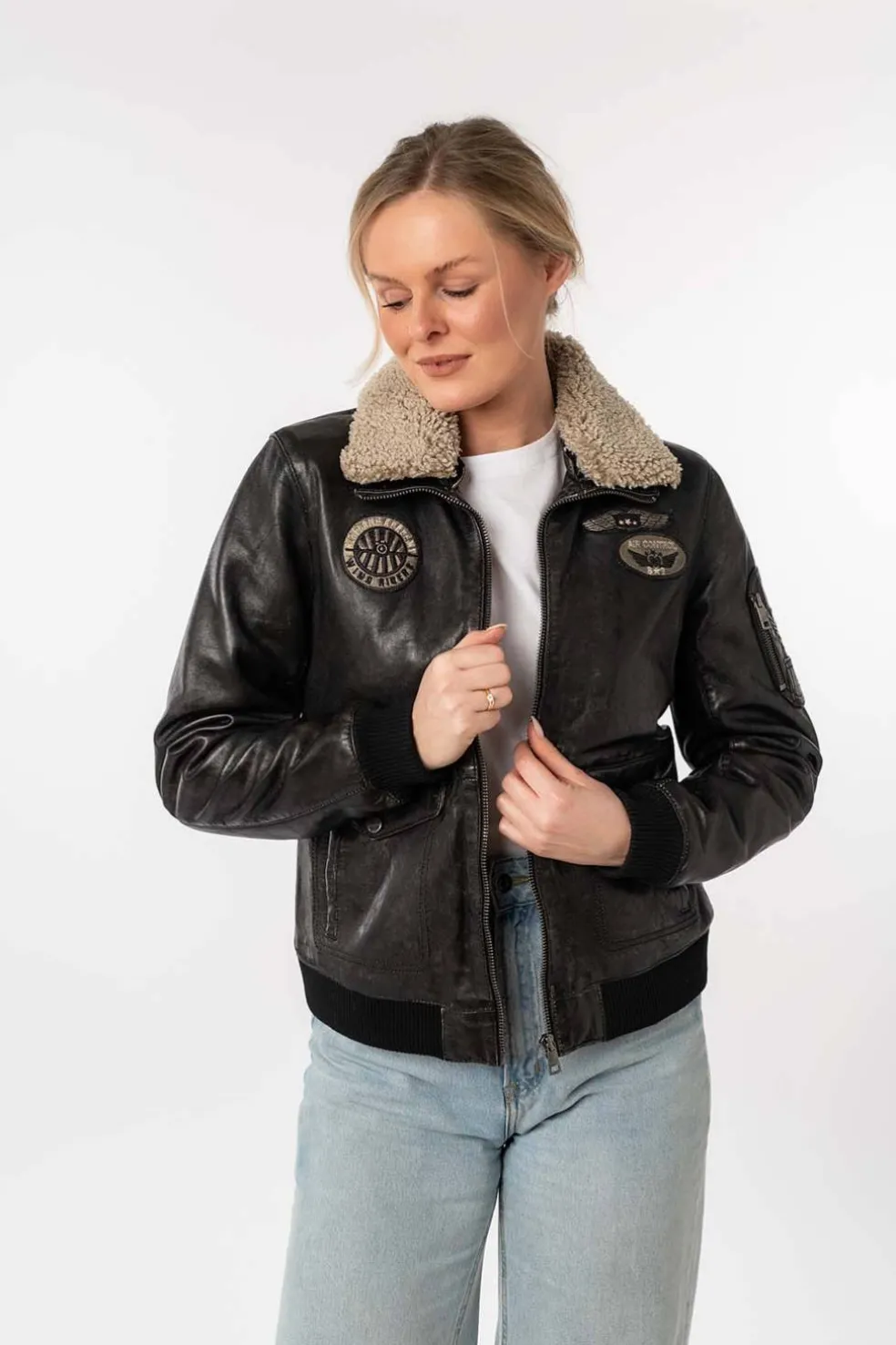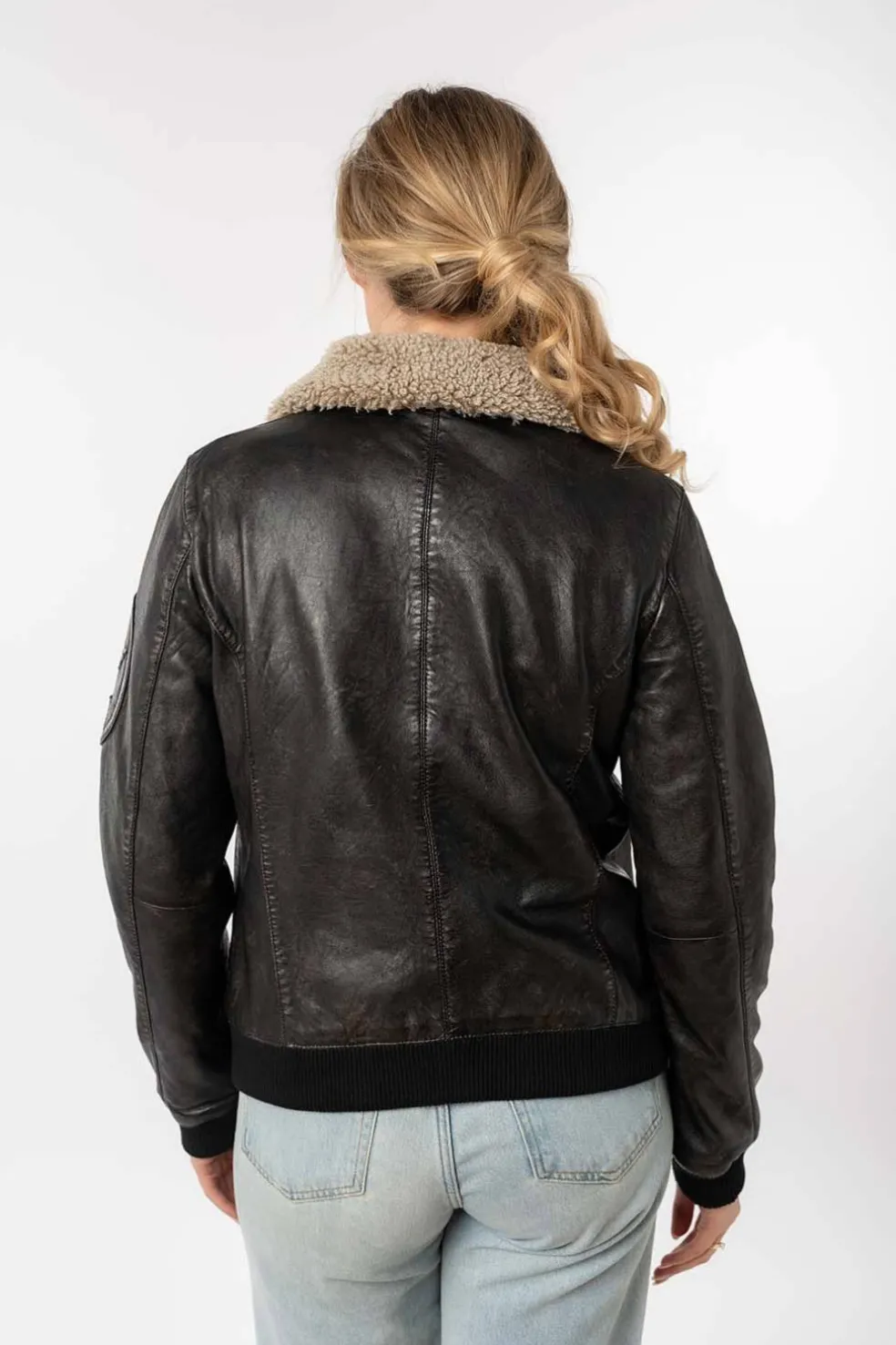 Moderna y con carácter, esta cazadora de cuero para mujer combina estilo y comodidad. Cuenta con bolsillos con cremallera, un cuello con borreguito sintético y parches decorativos que le aportan un toque distintivo y único. Perfecta para un look casual, urbano y lleno de personalidad.