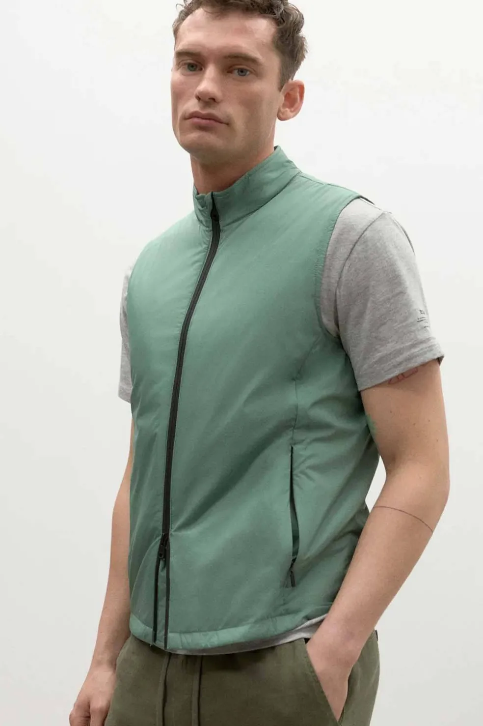 El chaleco Tibidabo tiene cierre con cremallera, dos bolsillos exteriores y otro interior. Una prenda monomaterial que promueve la economía circular. Fabricada con 100% Poliéster reciclado procedente de botellas de plástico PET, promueve la economía circular.