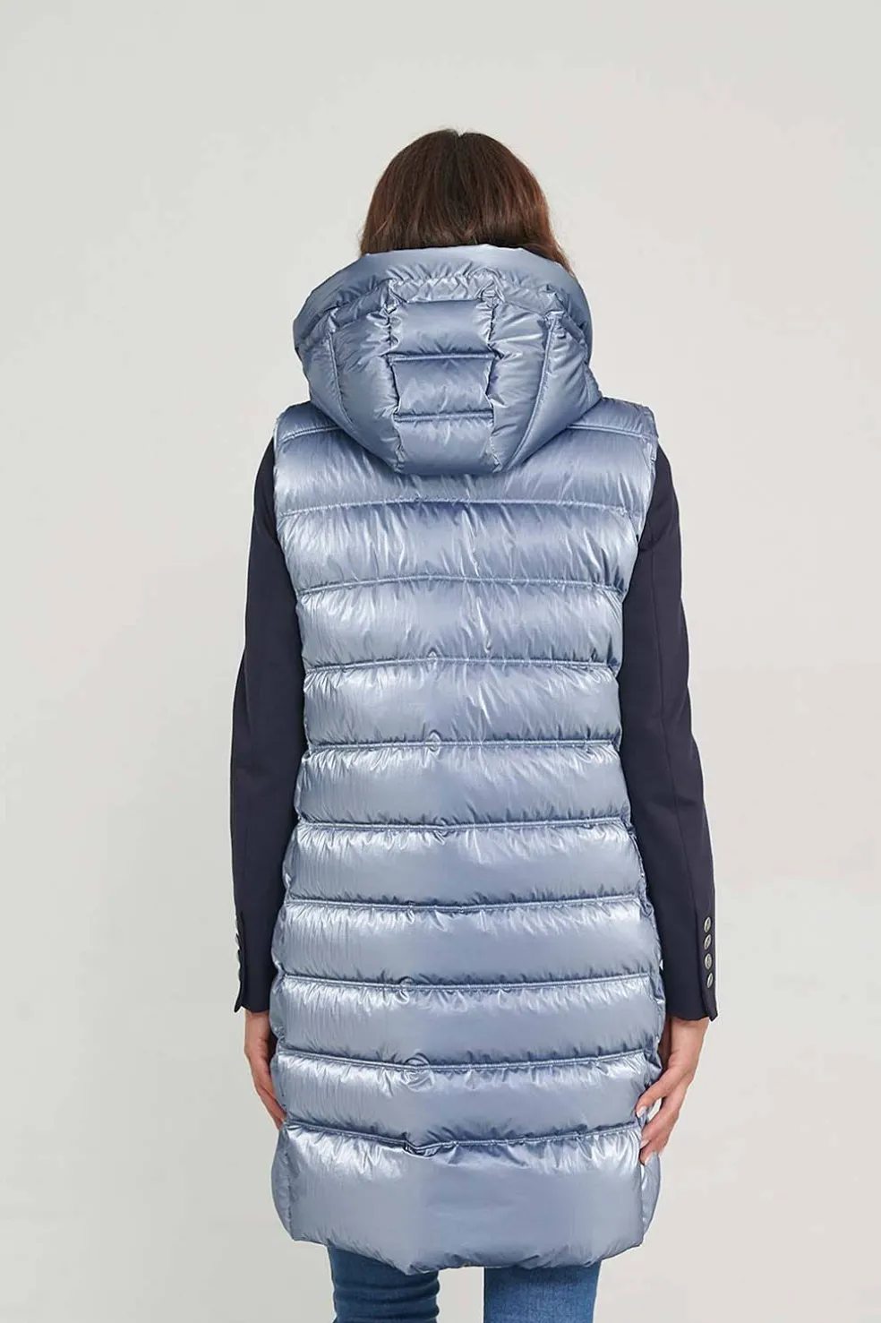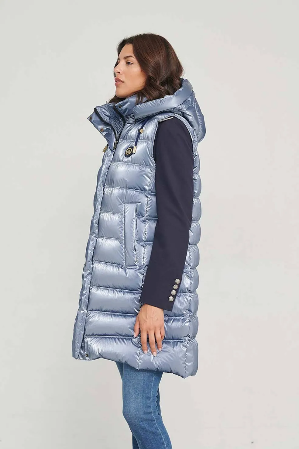 Chaleco diseñado en rayas con cierre central con solata exterior y cremallera de doble carro, bolsillos con tapa y capucha desmontable con visera y ceñidores.