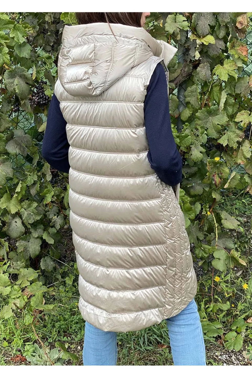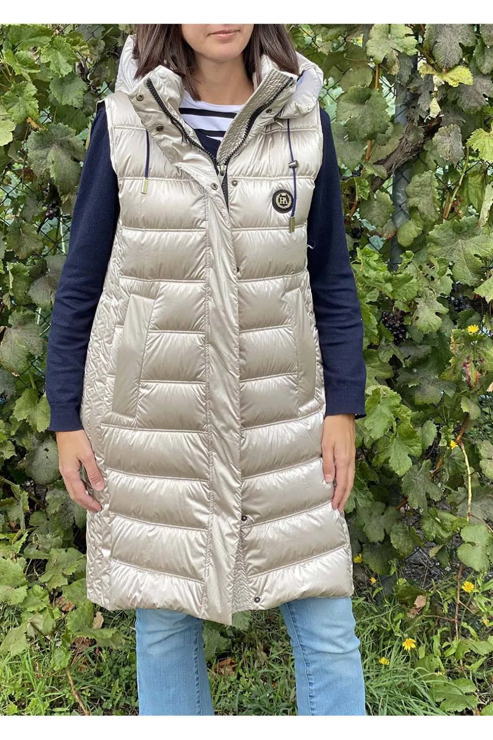 Este plumífero es cálido por su relleno de plumón termorregulador de 260gr y además está confeccionado en un material cortavientos y repelente al agua.