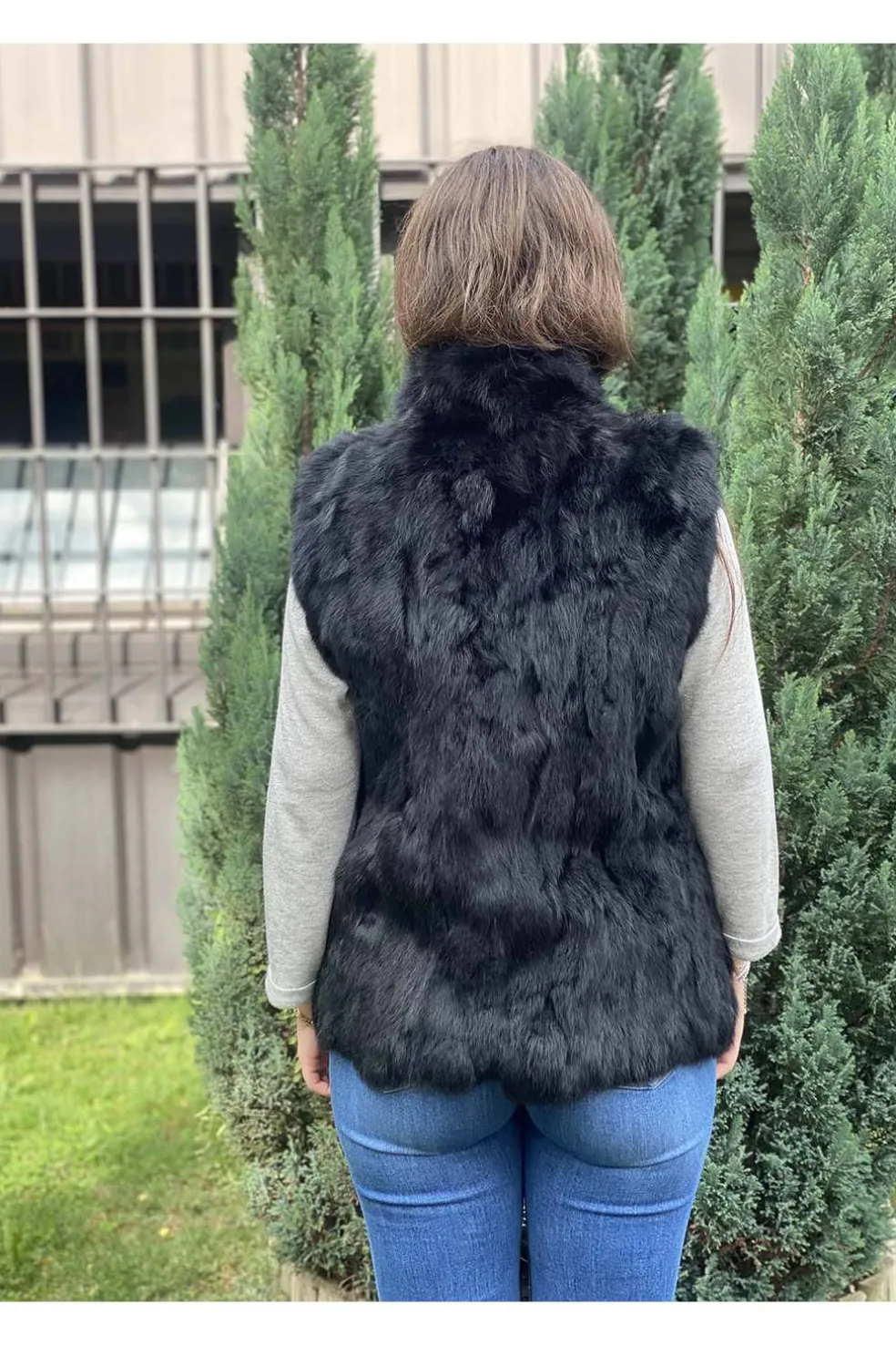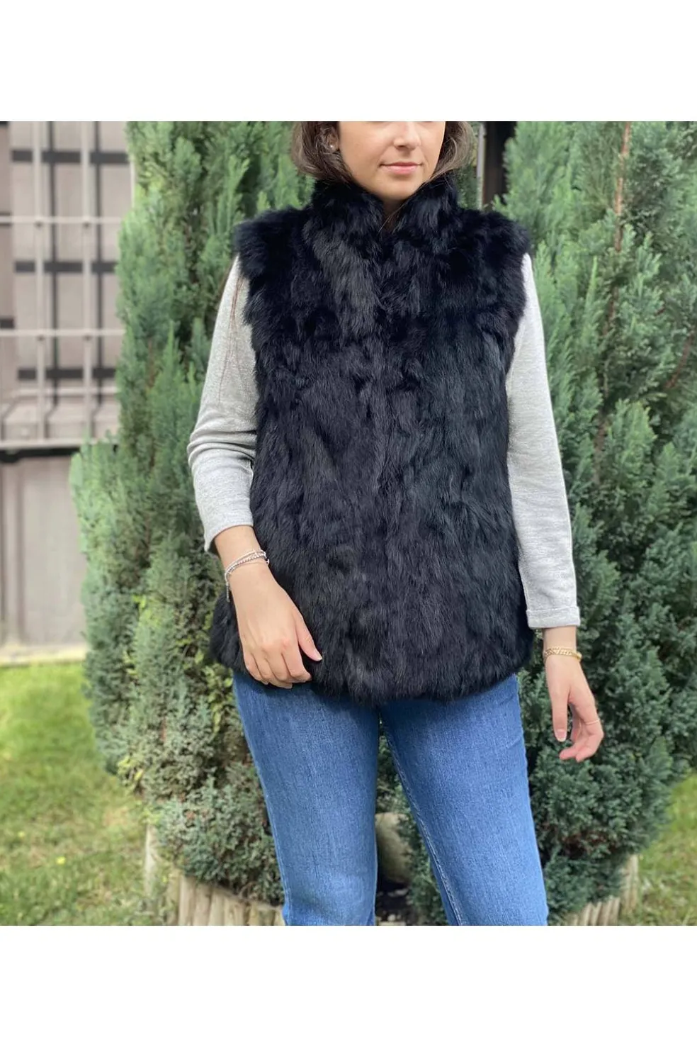 Chaleco de piel con pelo natural rex en color negro.