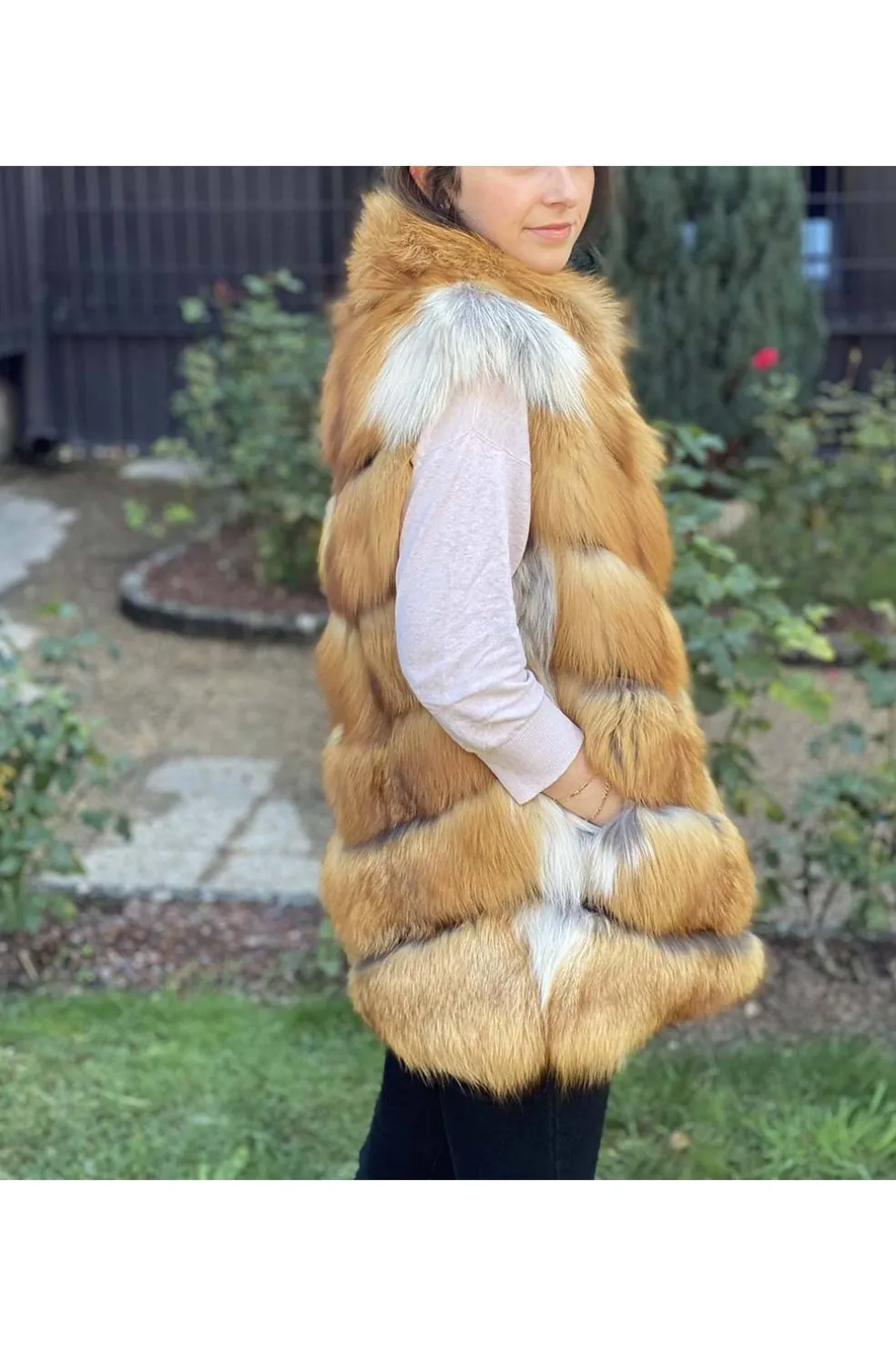Espectacular chaleco de pelo natural, una prenda muy ligera y muy chic para combinar con un estilo casual o más vestido.