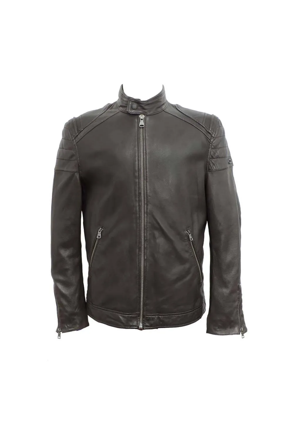 Chaqueta de cuero natural. Exterior 100% piel cordero. Largo prenda: 70 cm.