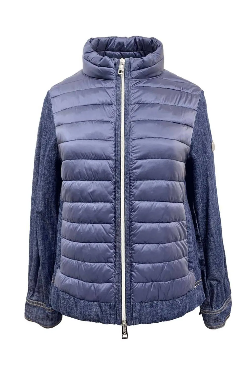 Chaqueta plumas Donjaz modelo Briony en un color azul, una prenda que combina acolchado y mangas de tela vaquera.