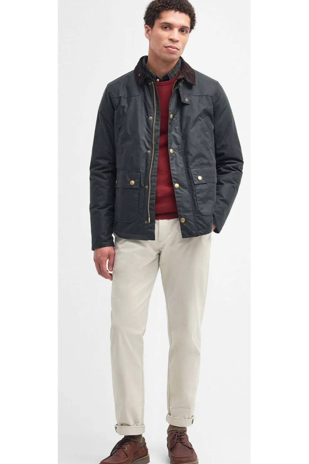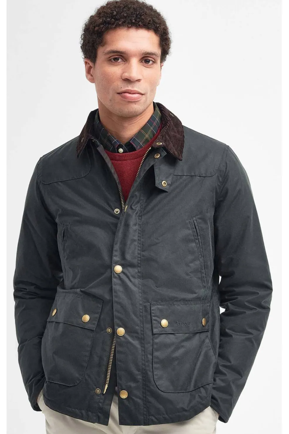 La chaqueta Barbour Reelin presenta un estilo encerado de 170 g con un forro clásico de tartán. Con cuello alto, dos bolsillos ribeteados y dos bolsillos inferiores de fuelle para mayor comodidad, esta chaqueta luce un estilo atemporal.