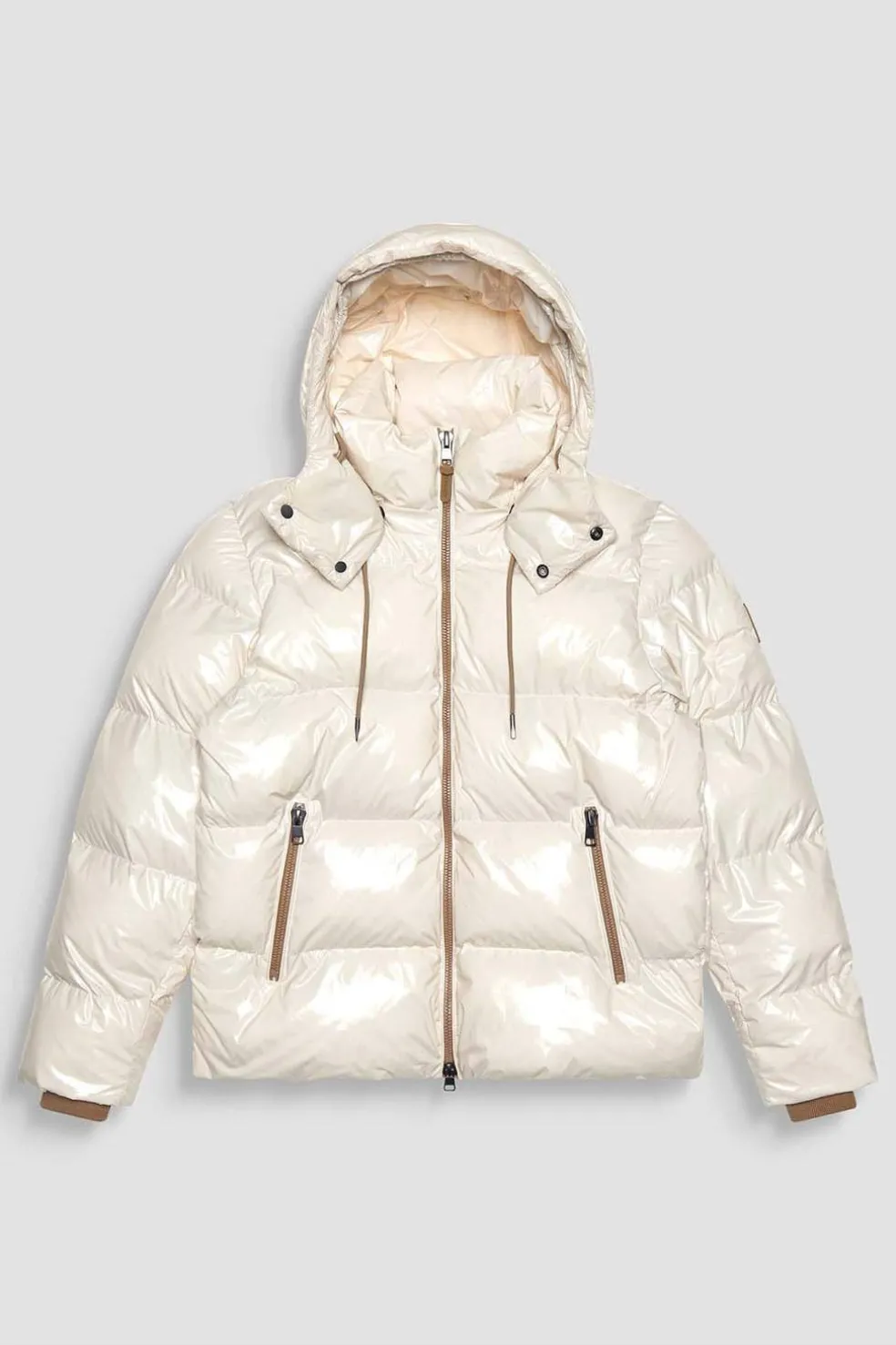 Fabricada íntegramente en nailon brillante, esta chaqueta añadirá un toque de estilo urbano contemporáneo a tus conjuntos de invierno. La prenda exterior presenta un ajuste relajado, cuello alto y capucha extraíble.
