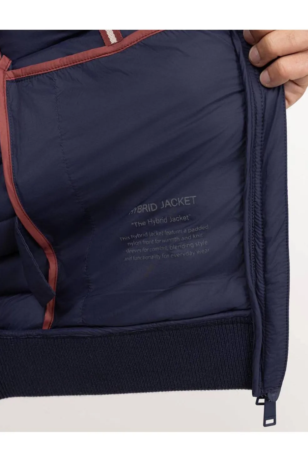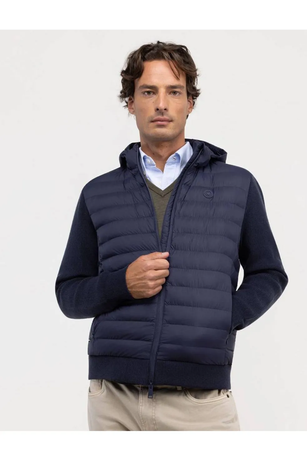 Chaqueta de hombre de nylon acolchada a base de botellas de plástico recicladas. Cuenta con manga en punto para darle una mayor confortabilidad a la prenda.