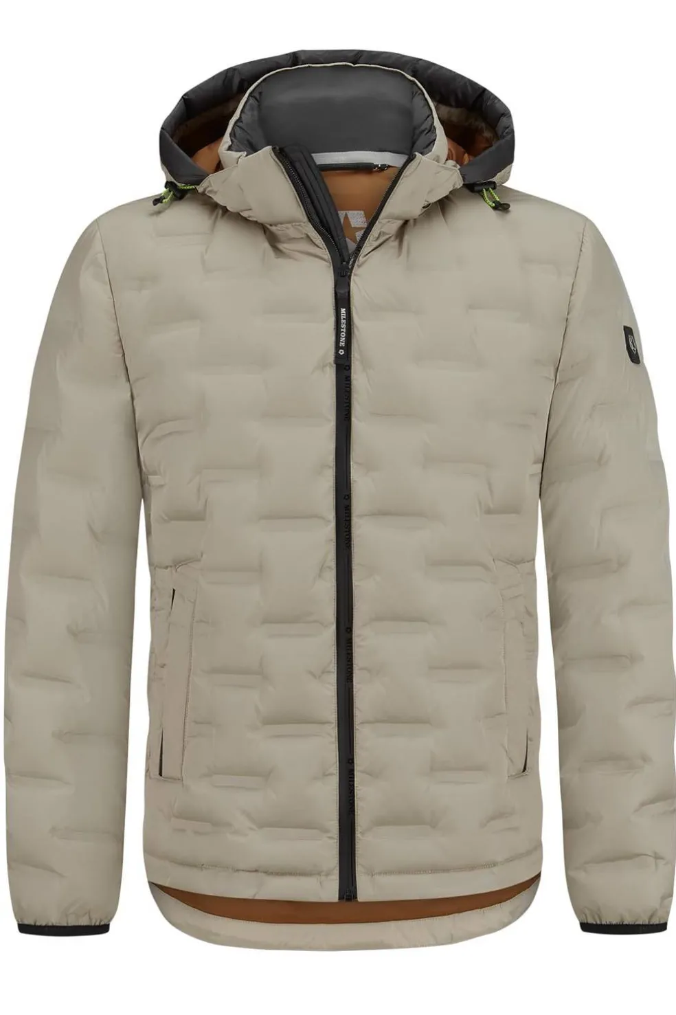 Chaqueta de plumón con capucha extraíble de MILESTONE. Esta chaqueta de plumón tiene un aspecto moderno acolchado con prensa térmica. El modelo destaca por su agradable ligereza, su aspecto deportivo y su capota extraíble.