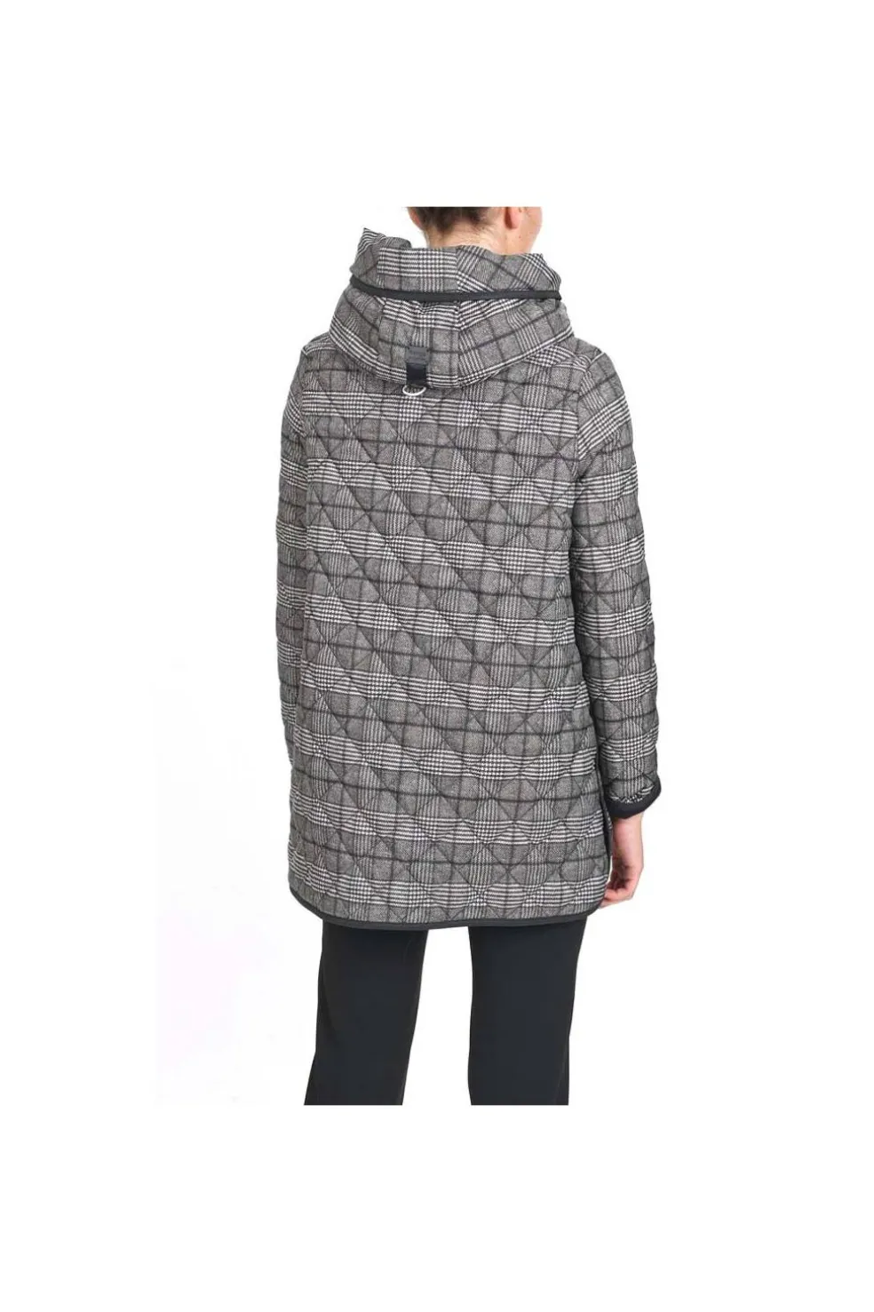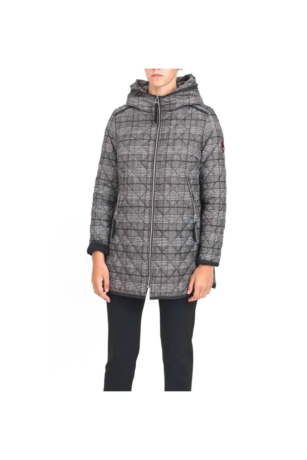 Estilosa parka larga de cuadros. Bolsillos altos con una importante cremallera metálica. Original cierre de costado rematado con unos broches. Su amplia capucha lleva un grosgrain con una arandela y una chapa personalizada. Escudo en la manga izquierda.