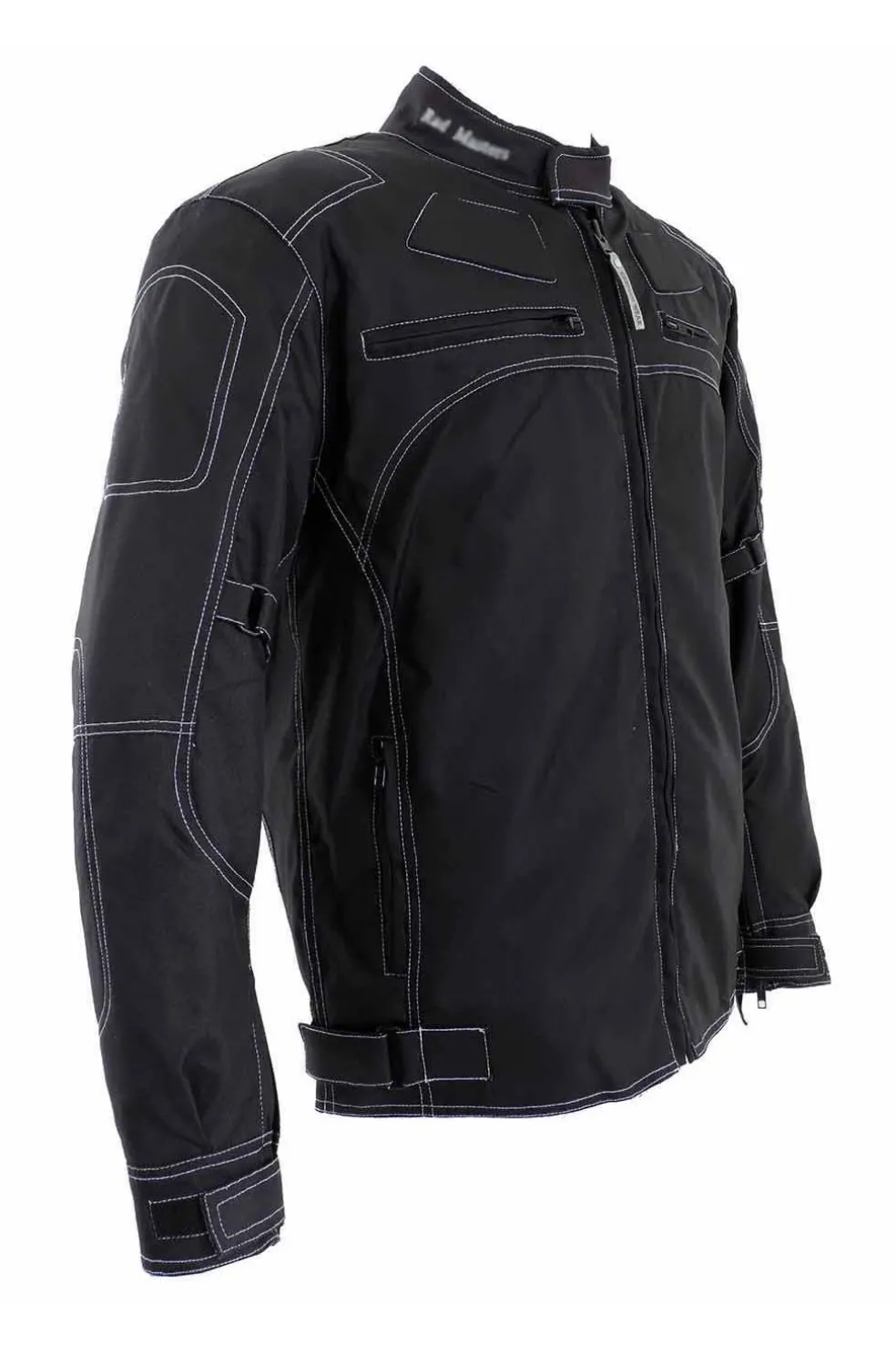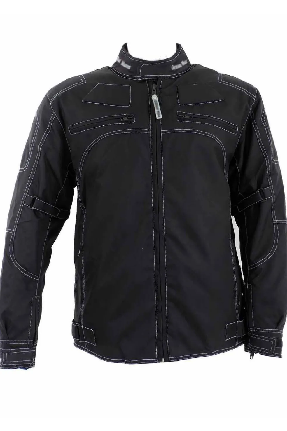 Chaqueta de microfibra para moto. Refuerzos en caderas y hombros con múltiples bolsillos.