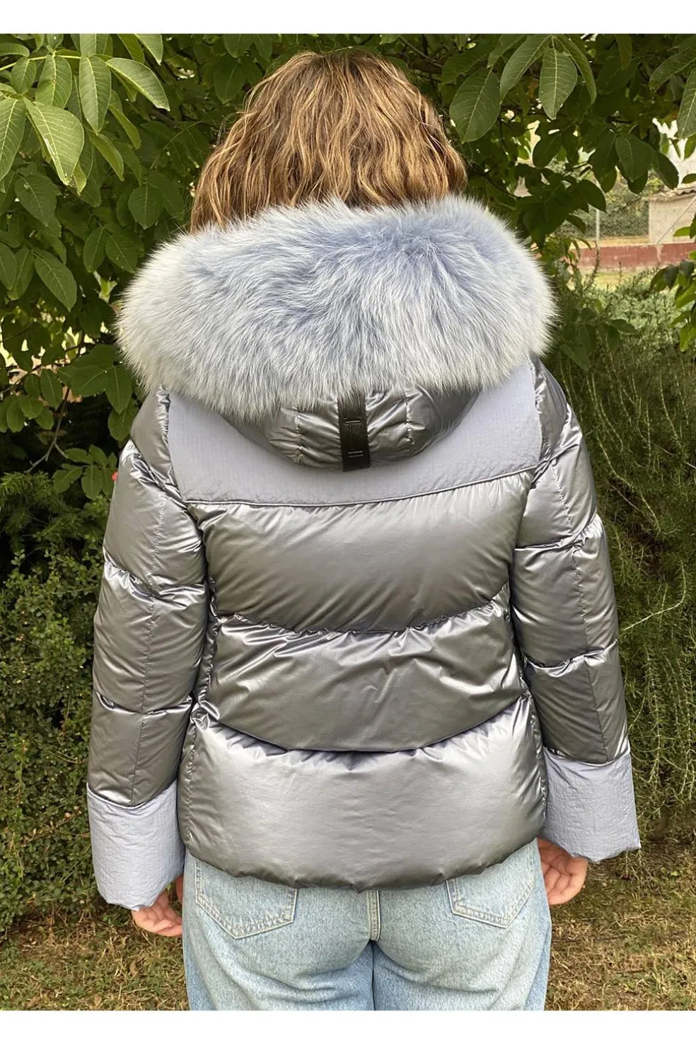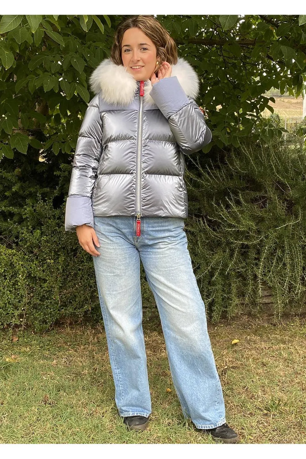 La chaqueta Ivon 10 de Dichi en color azul combina moda y funcionalidad en una prenda única. Su efecto metalizado aporta un estilo moderno y sofisticado, mientras que el relleno de pluma natural asegura calidez ligera y confortable. La capucha con pelo natural añade un toque elegante y protección extra frente al frío. Una chaqueta versátil y distinguida, ideal para los días de invierno.