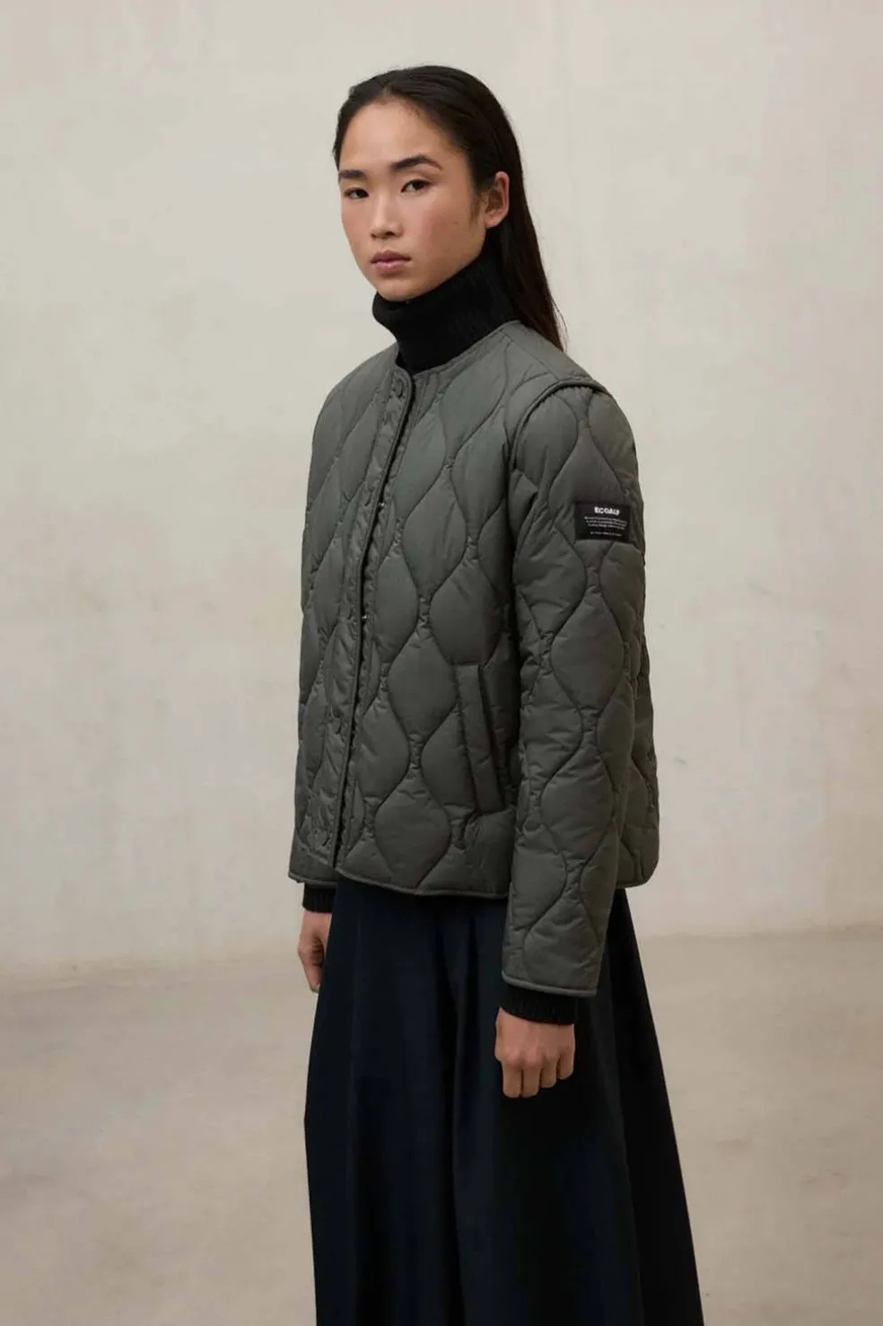 La chaqueta Musa está confeccionada con tejido principal 100% Poliéster reciclado, forro 100% Poliéster reciclado y relleno 100% Poliéster reciclado.