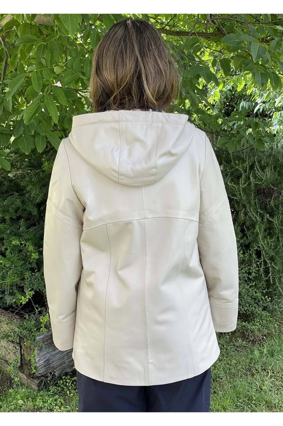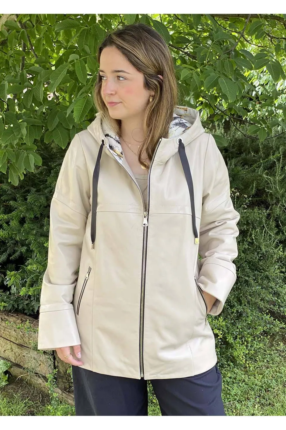 Esta chaqueta de piel de Medinapiel combina estilo urbano y funcionalidad en una prenda moderna y versátil. Confeccionada en suave piel natural de color beige, ofrece un acabado impecable y una sensación de confort al vestir. Cuenta con gorro integrado, cierre frontal con cremallera y bolsillos laterales también con cremallera, aportando practicidad sin perder elegancia. Su diseño ajustado realza la silueta, convirtiéndola en la opción ideal para el día a día con un toque sofisticado. Perfecta para quienes buscan una chaqueta de piel ligera, actual y de calidad superior.