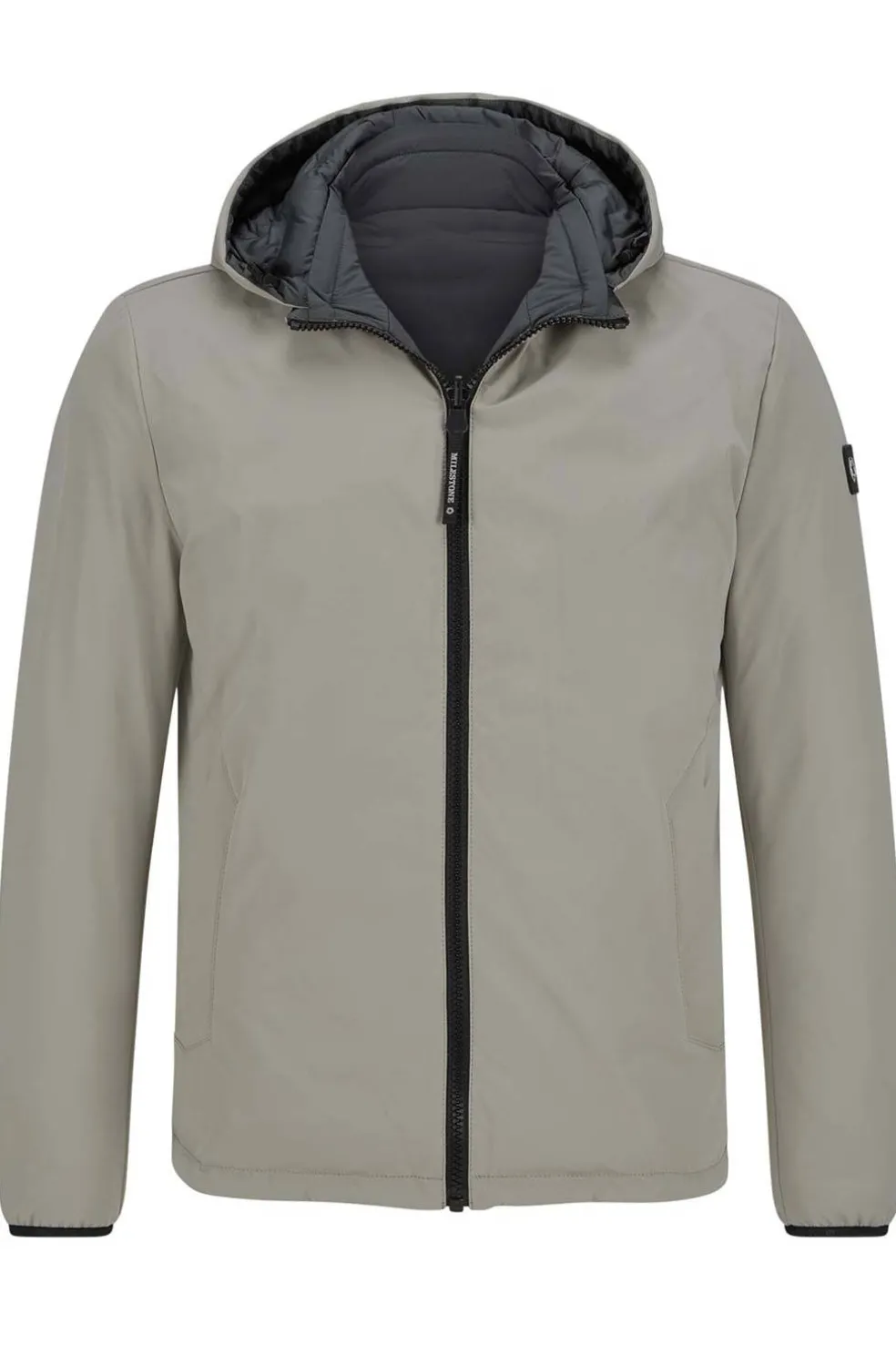 - Parte delantera Con cuello alto y capucha extraíble, cremallera reversible, bolsillos con cremallera, bajo ajustable