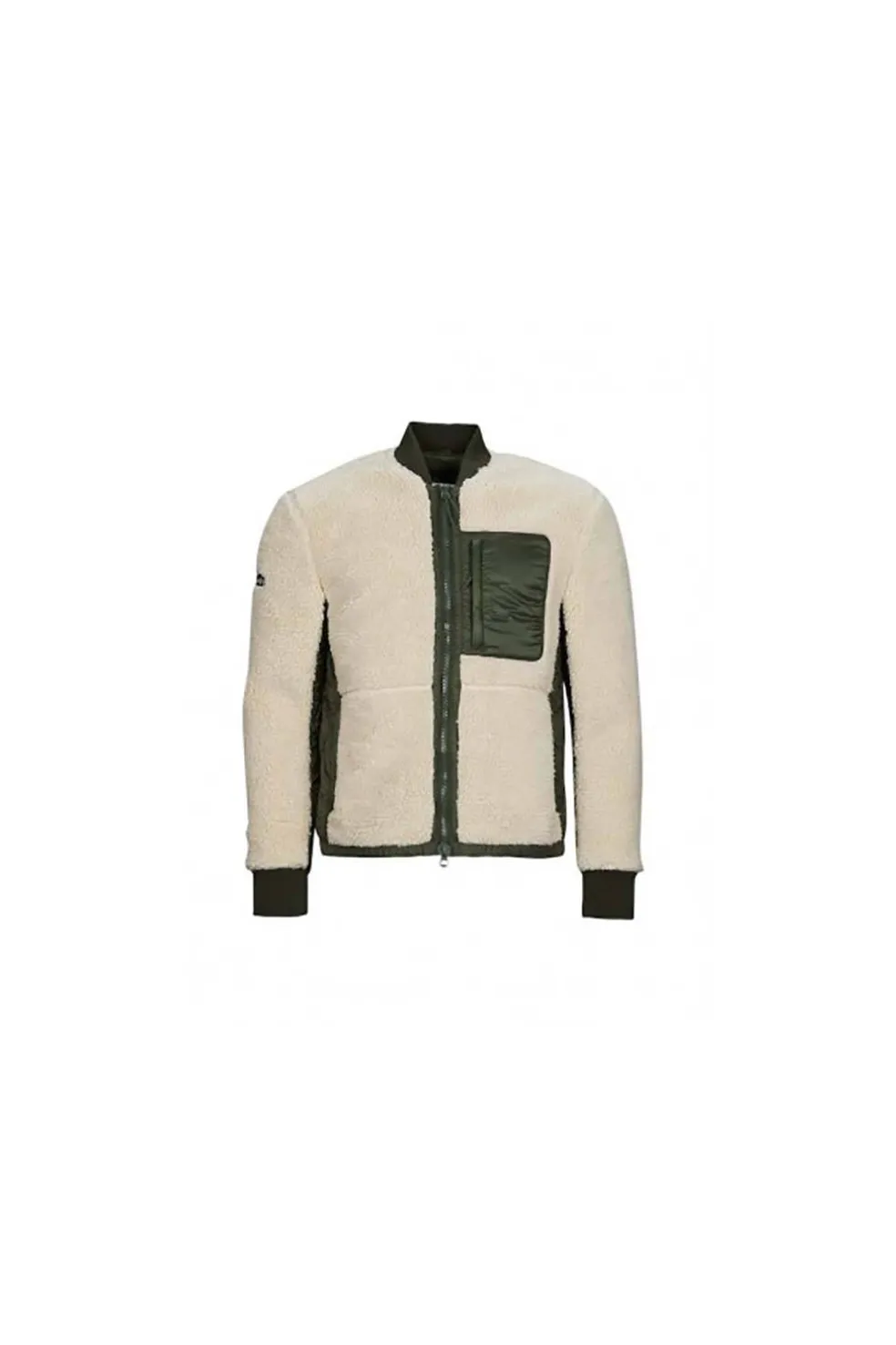 Chaqueta de borreguillo con cremallera y múltiples bolsillos. Paneles acolchados en los laterales y mangas.