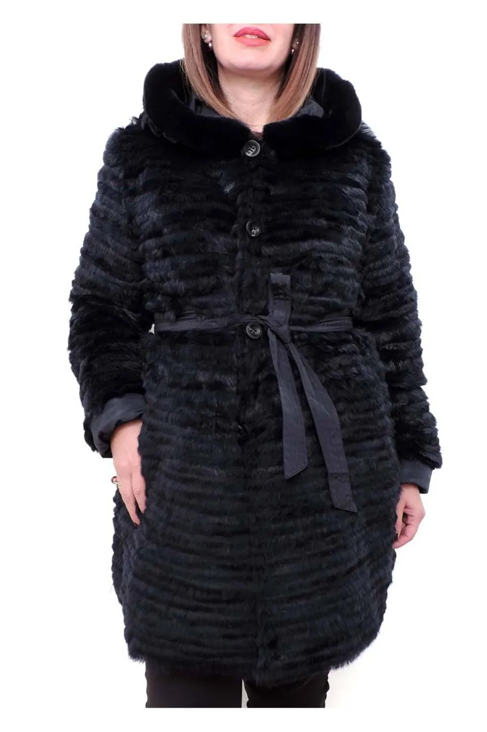 Chaquetón de mujer reversible por un lado gabardina y por el otro rex tireado.