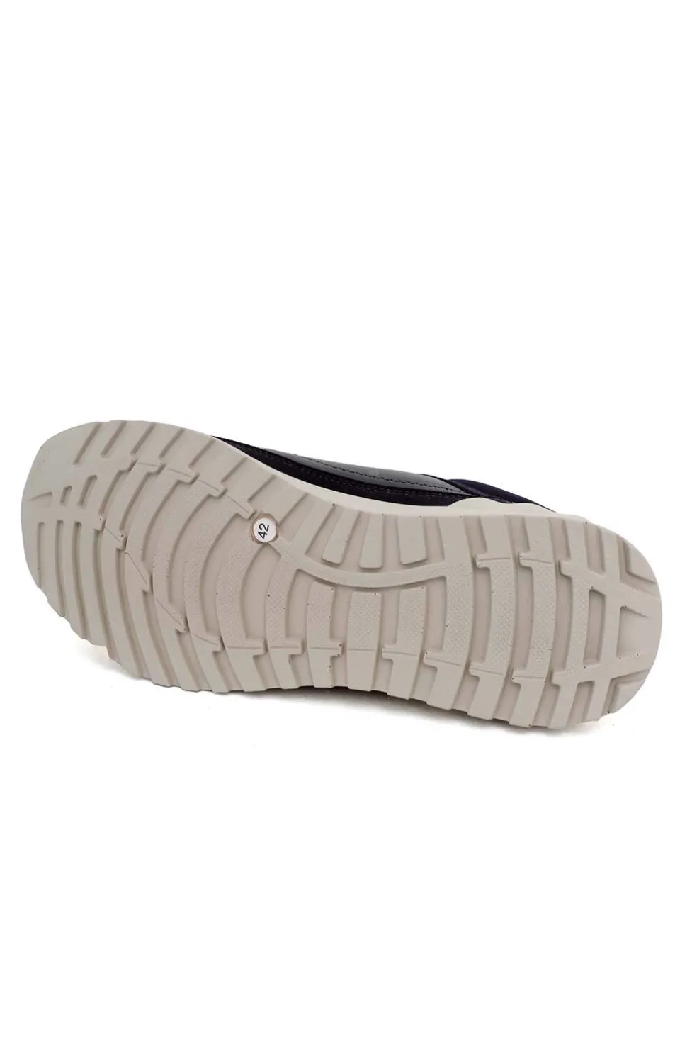 Zapatillas de hombre, en piel vacuno, con cierre de cordones y suela de caucho.