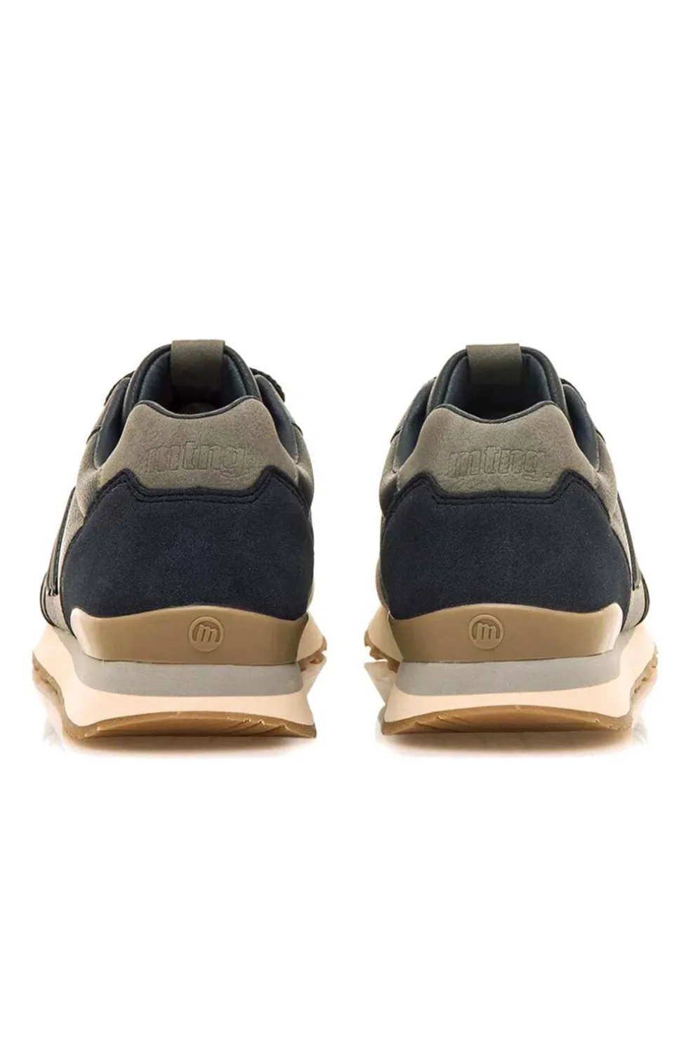 Zapatillas deportivas azul marino Porland Classic para hombre, marca Mustang. Este modelo cuenta con diversos tipos de materiales y a su vez tonos, e incluye un sutil toque de beige en la parte trasera. Tiene bordado la M del logo de Mustang en el lateral.