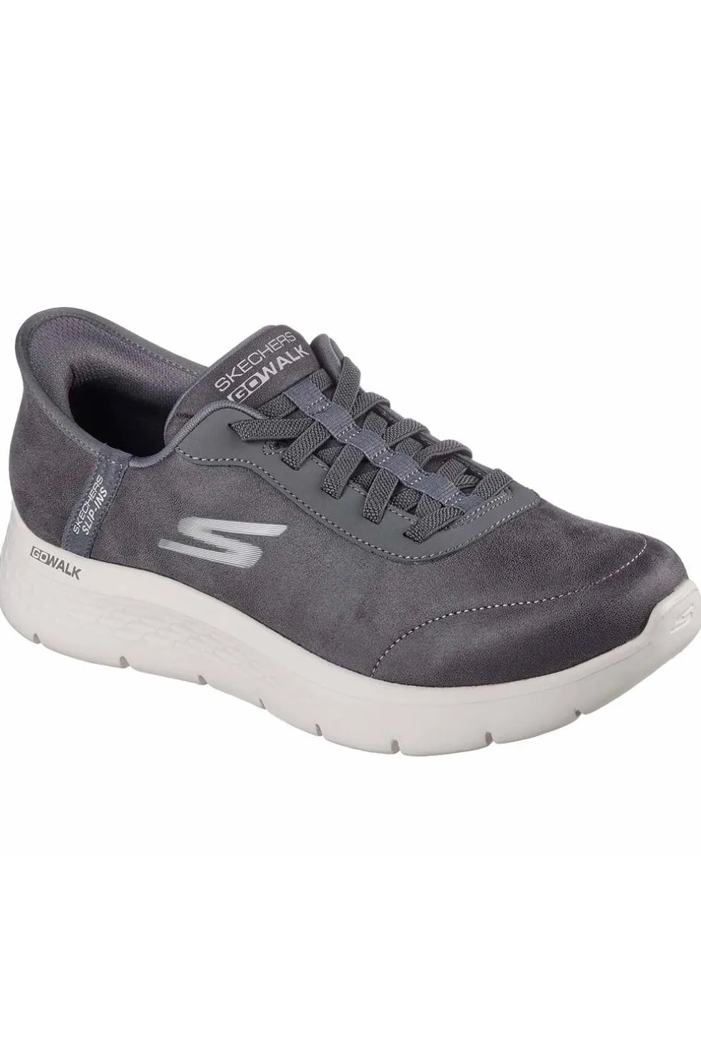 Disfruta de un confort elegante y flexible con Skechers Hands Free Slip-Ins®: GO WALK® Flex – Smooth Motion. Estas zapatillas Slip-On, diseñadas con nuestro sistema exclusivo Heel Pillow™, cuentan con una parte superior de piel sintética con cordones elásticos, una plantilla Skechers Air-Cooled Memory Foam® y una amortiguación ligera ULTRA GO®.