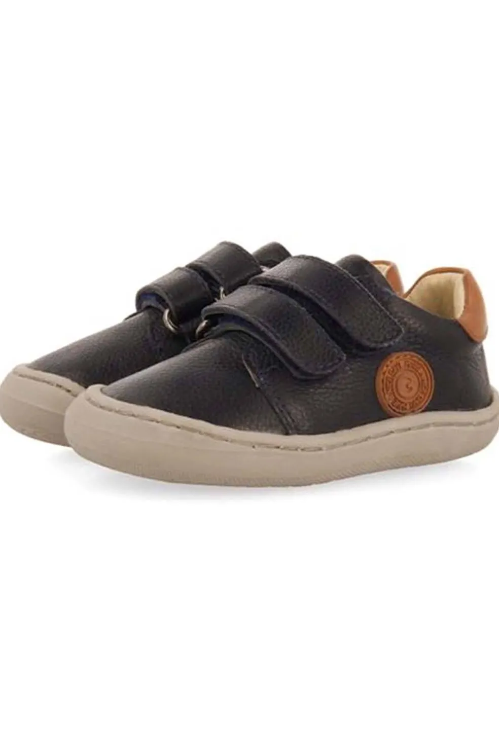 La sensación de caminar descalzo, pero con la protección de Gioseppo Barefoot. Sneakers color azul marino con cierres ajustables sin elementos anatómicos que puedan obstaculizar el desarrollo óptimo del pie.