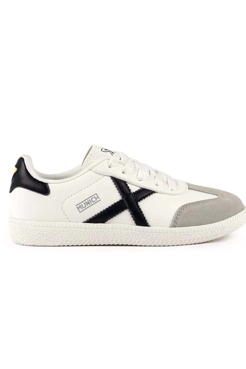 Fabricada en un colorido tono monocromo, combina piel y materiales sintéticos de alta calidad. Su suela, inspirada en las pistas de balonmano, forma parte de la historia de nuestra compañía, ofreciendo un toque único y auténtico a este modelo para los más pequeños.