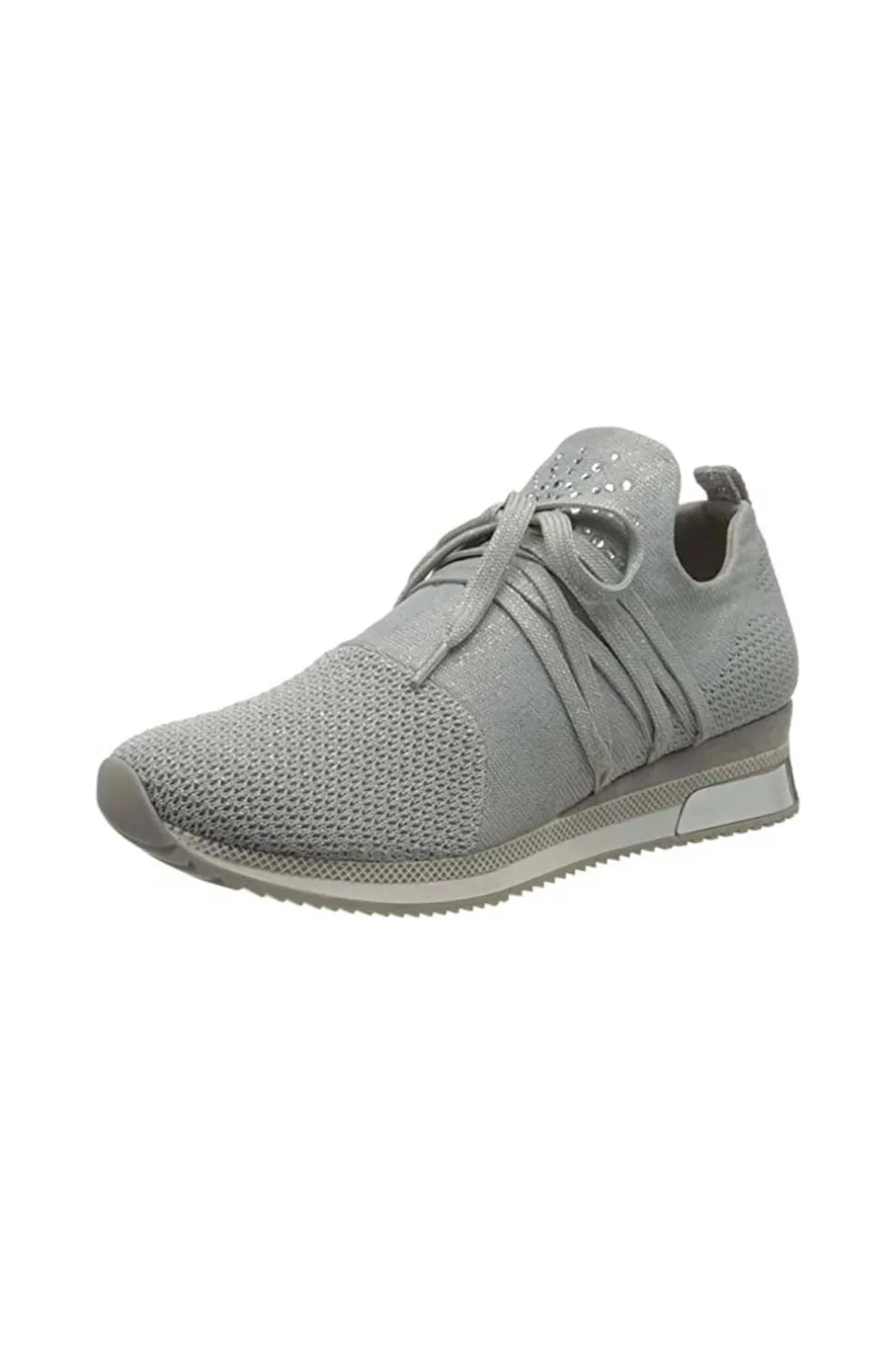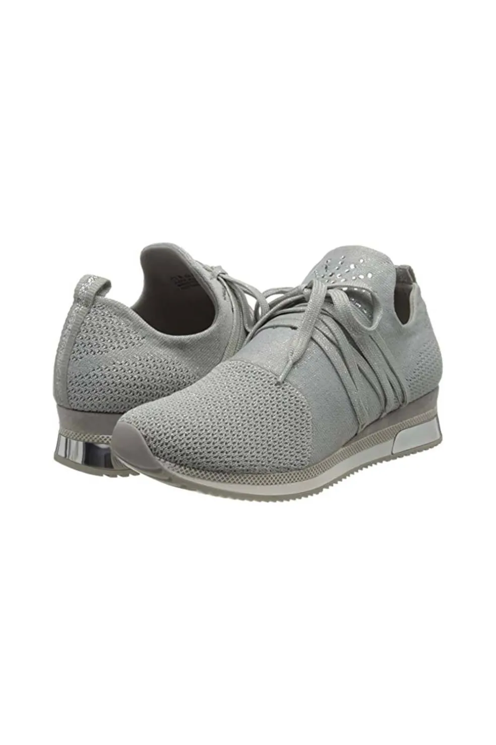 Deportivo de suela sintética, exterior en textil brillante y cierre de cordones.