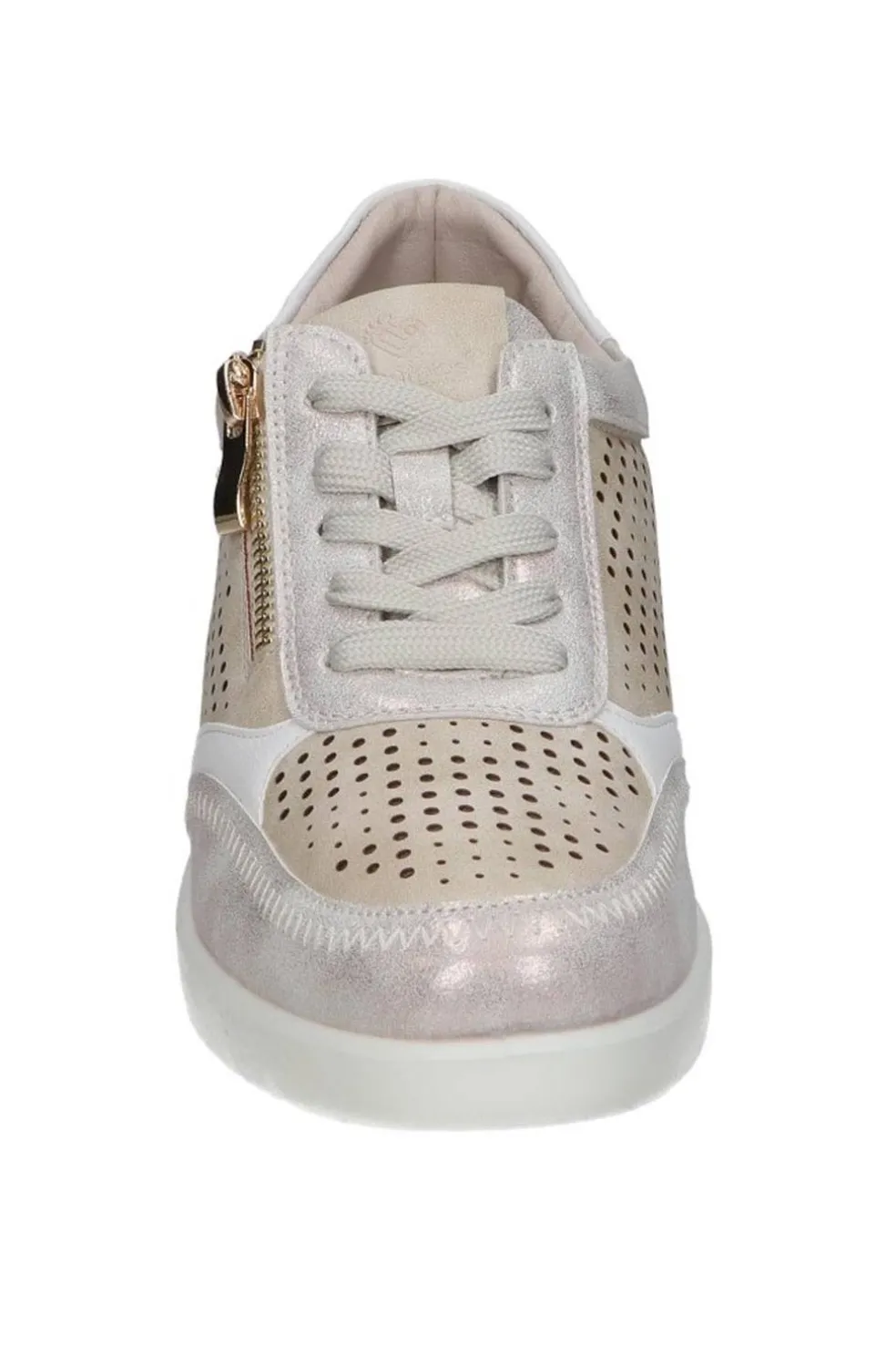 Eleva tu estilo y comodidad con el deportivo Amarpies en un elegante color platino. Este modelo cuenta con una práctica cremallera lateral que facilita el calzado, mientras que su tacón de 4 cm ofrece un toque de altura sin sacrificar la comodidad. La plantilla Memory Sponde se adapta a la forma de tu pie como un guante, proporcionando una amortiguación excepcional y suavizando los impactos en cada paso. Perfecto para quienes buscan un calzado versátil que combine moda y confort.