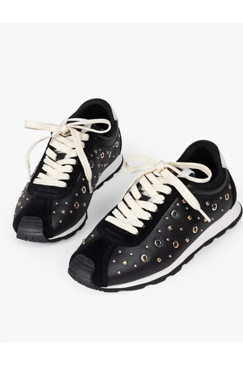 Minimalistas por fuera, potentes en esencia. Las INARA están confeccionadas en piel 100% con tachuelas metálicas que aportan un punto rebelde. En negro o cuero, son un fondo de armario con personalidad. Ideal para: romper looks sobrios con un detalle inesperado.