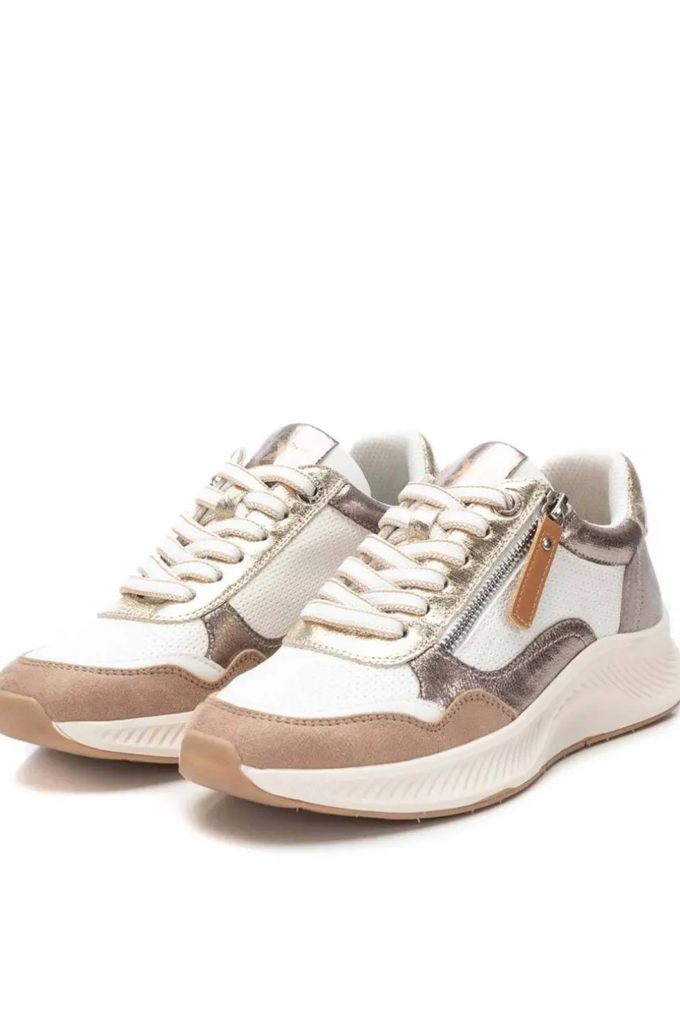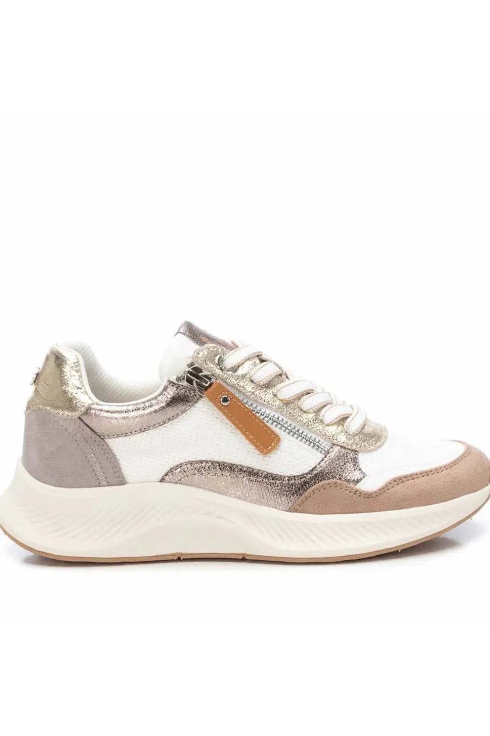 Zapatilla de mujer, de la marca Xti. Fabricada en combinación de textil y material que imita la piel con efecto metalizado. Cierre mediante cremallera. Con plantilla extraíble.