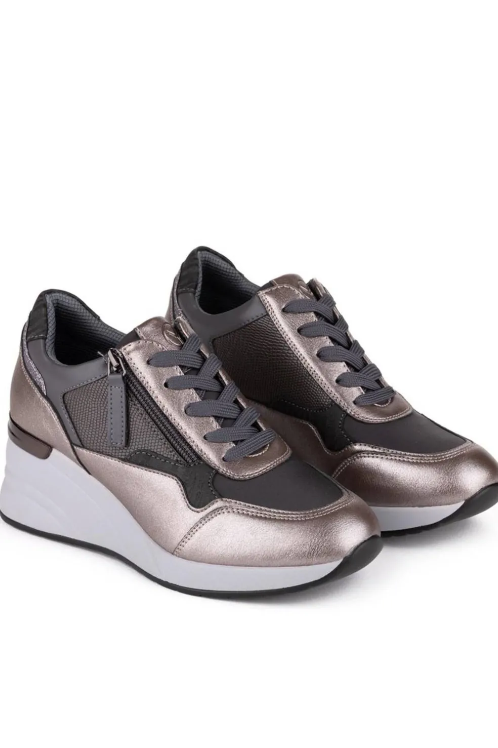 Lauper llega a Yumas para elevarte a lo más alto al ritmo de «Girls Just Wanna Have Fun». Estas sneakers con cuña , están diseñadas en polipiel y nylon con detalles asimétricos. Lauper dipone de una cremallera lateral y plantilla de EVA moldeada extraíble. Además, su diseño combina con cualquier look.