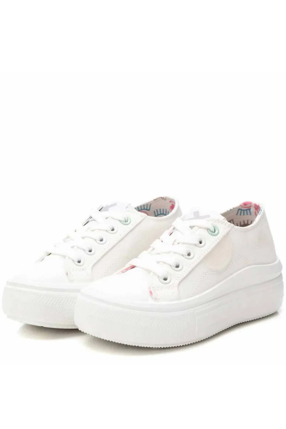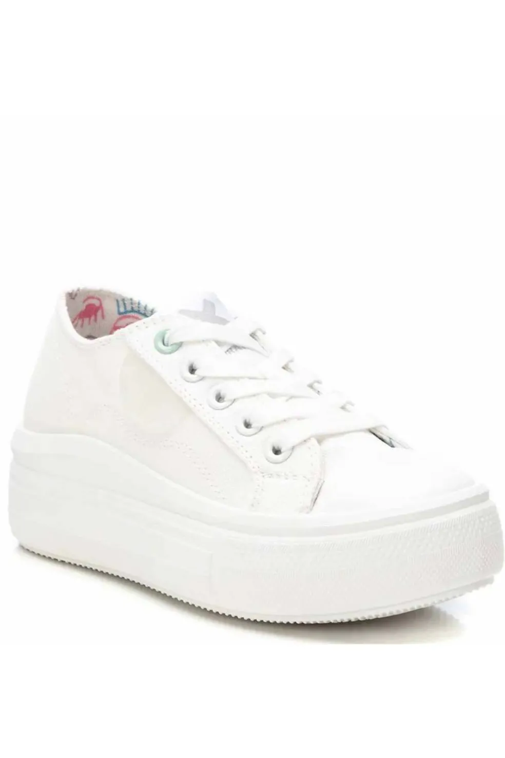 Zapatilla de niña de la marca Xti Kids. Fabricada de lona metalizada. Cierre con cordones ajustables. Diferentes colores para acompañarte esta temporada. Tirador trasero para facilitar la puesta. Piso con volumen, cómoda planta y suela grueso de goma antideslizante.