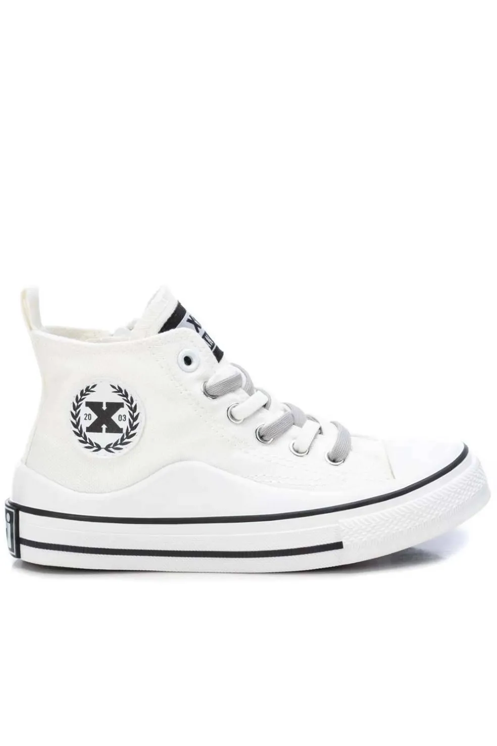 Botín unisex fabricado en lona. Cremallera interior con cordones elásticos y un tirador trasero para facilitar la puesta. Original piso con ondas. Resistente suela de goma antideslizante.