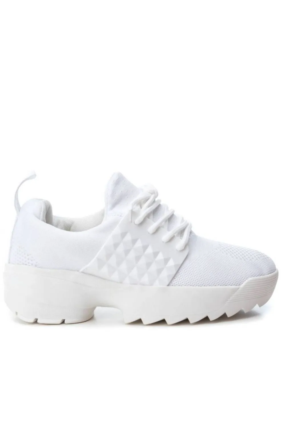 Zapatilla de mujer con suela blanca de 5 cm y cordones al tono. Zapatilla de Xti de pura tendencia para este verano. Decoraciones laterales con un toque rockero.