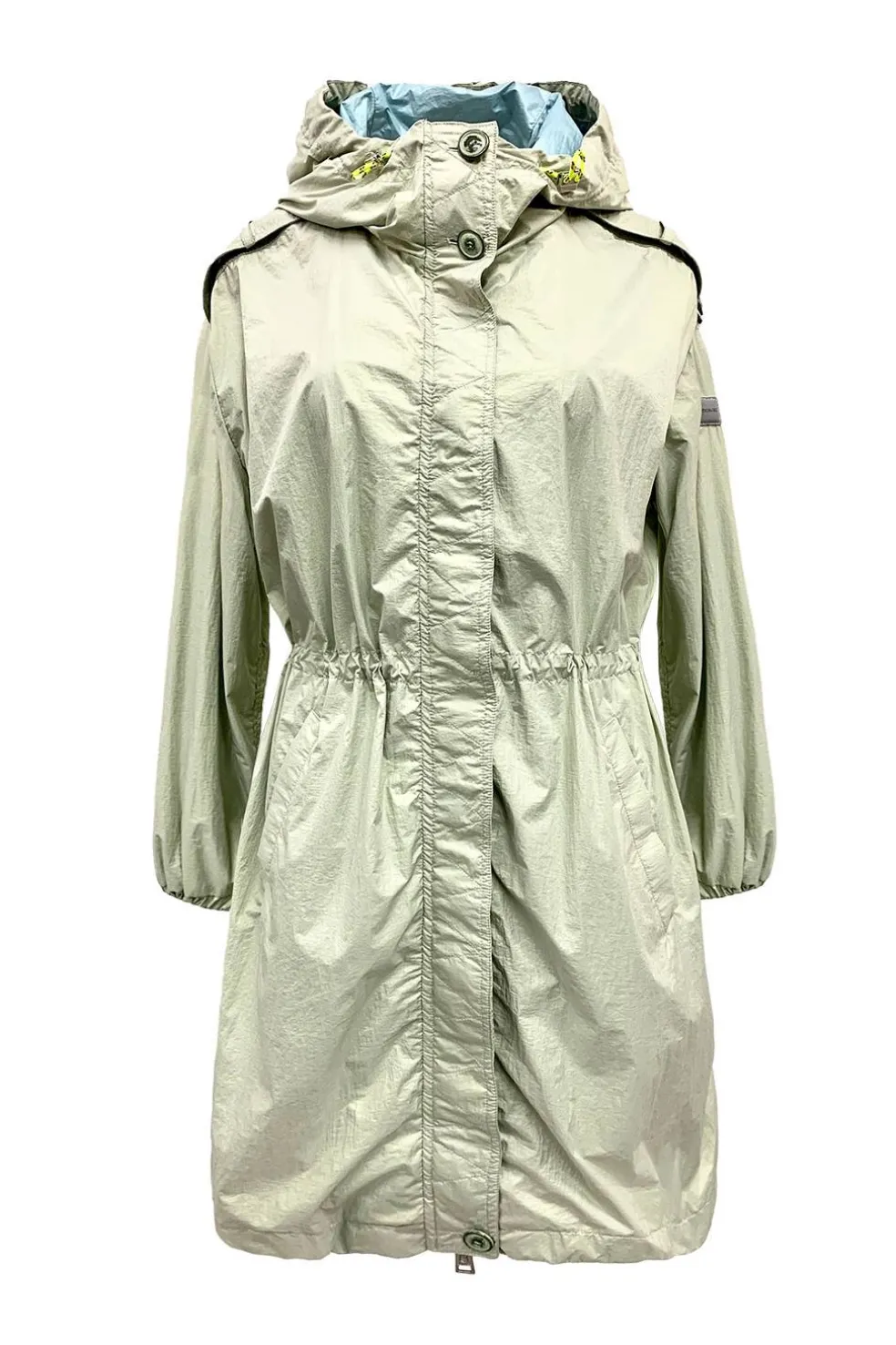 Gabardina Donjaz modelo Anthea, la prenda mas «cool» de la temporada, es una prenda metalizada que tira a un color verdoso. Fácil de combinar y sumamente versátil, se ven bien tanto con unas zapatillas blancas de sport como con unos tacones altos.