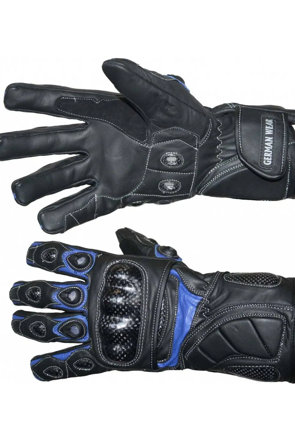 Guantes de moto hechos de la mejor piel de vacuno en color azul / negro