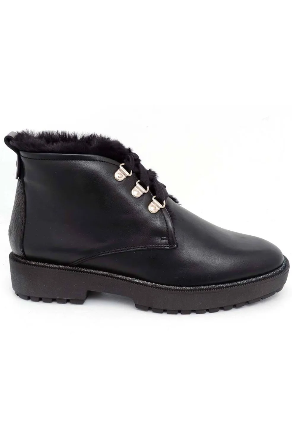 Botín de piel básico. Detalle de cordones montañeros y pelo en su interior. Perfectas para los días más fríos de esta temporada. Incorporación de la nueva tecnología TRIFLOW, amortigua cada paso aportando flexibilidad y confort en la pisada.