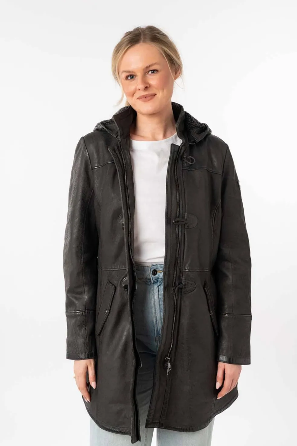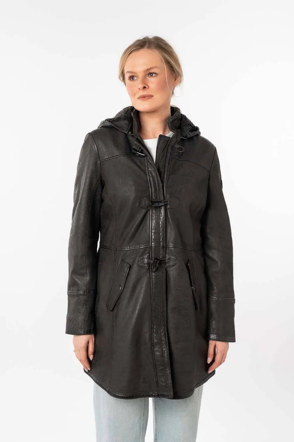 Presenta cierre frontal con cremallera y trabillas decorativas, que aportan un detalle distintivo al diseño. La capucha forrada añade comodidad y protección extra en climas fríos, mientras que los dos bolsillos frontales con solapa ofrecen funcionalidad sin comprometer el estilo. Su corte ligeramente alargado y entallado proporciona un ajuste moderno y favorecedor, ideal para un look urbano y sofisticado.