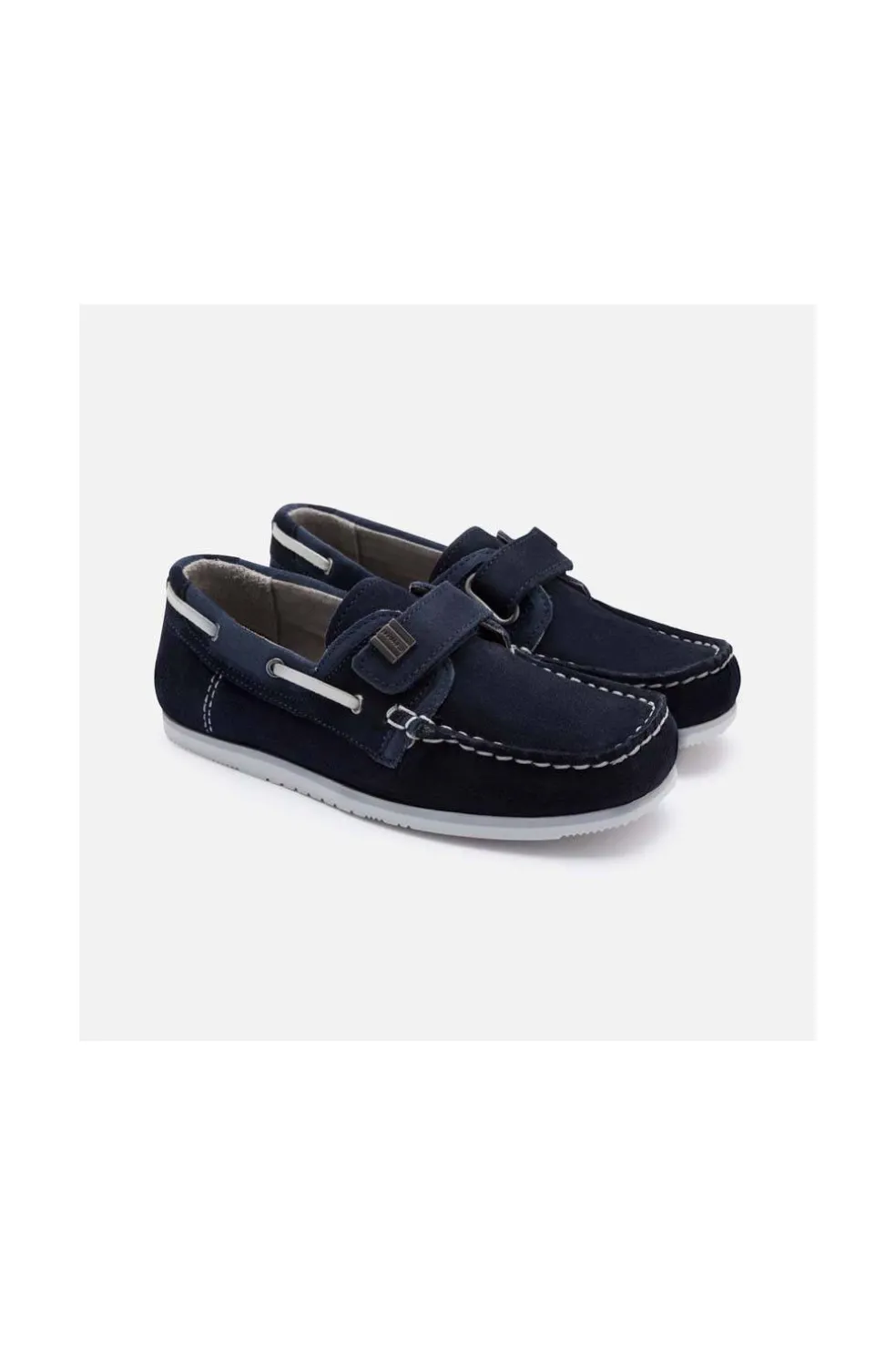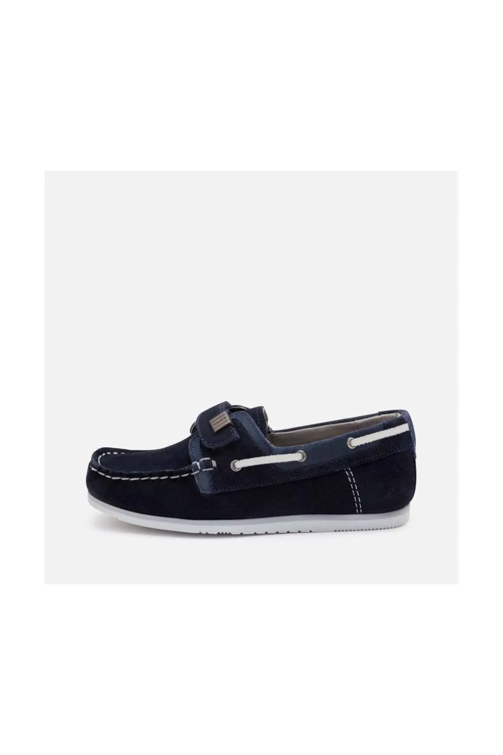 Náuticos para niño de estilo clásico y elegante. Un zapato atemporal ideal para vestir en momentos especiales. Calzado con forro interior de algodón y plantilla de piel. Revestimiento exterior de piel serraje. Suela de goma antideslizante para afianzar la pisada. Elementos de adorno: detalles de color a contraste.