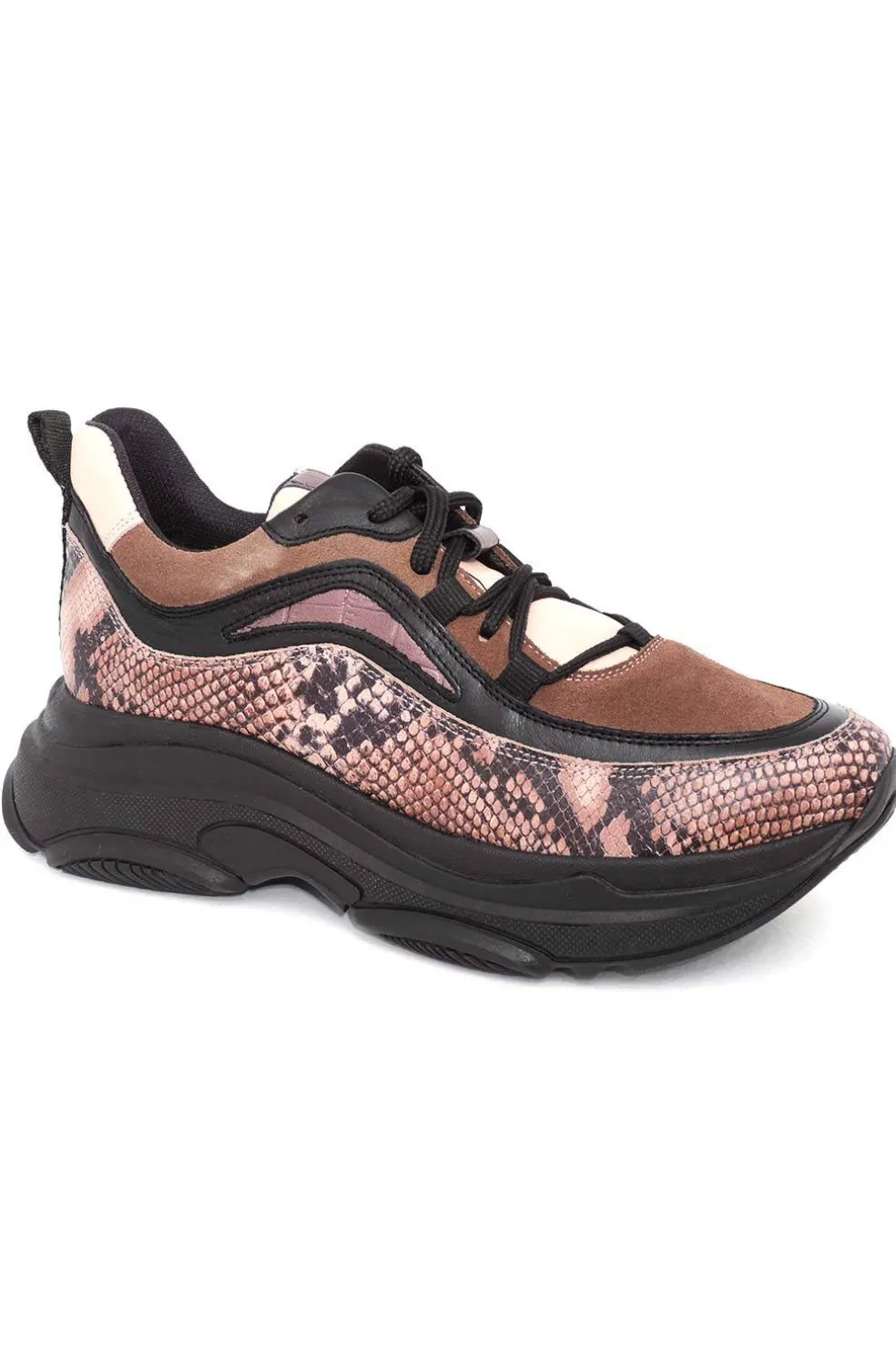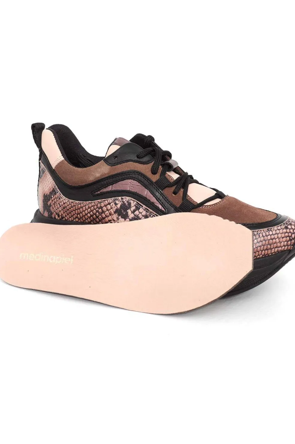 Sneaker de moda hecha en España con diferentes pieles y acabados , print , napa , ante que dan como resultado una espectacular deportiva de lujo.