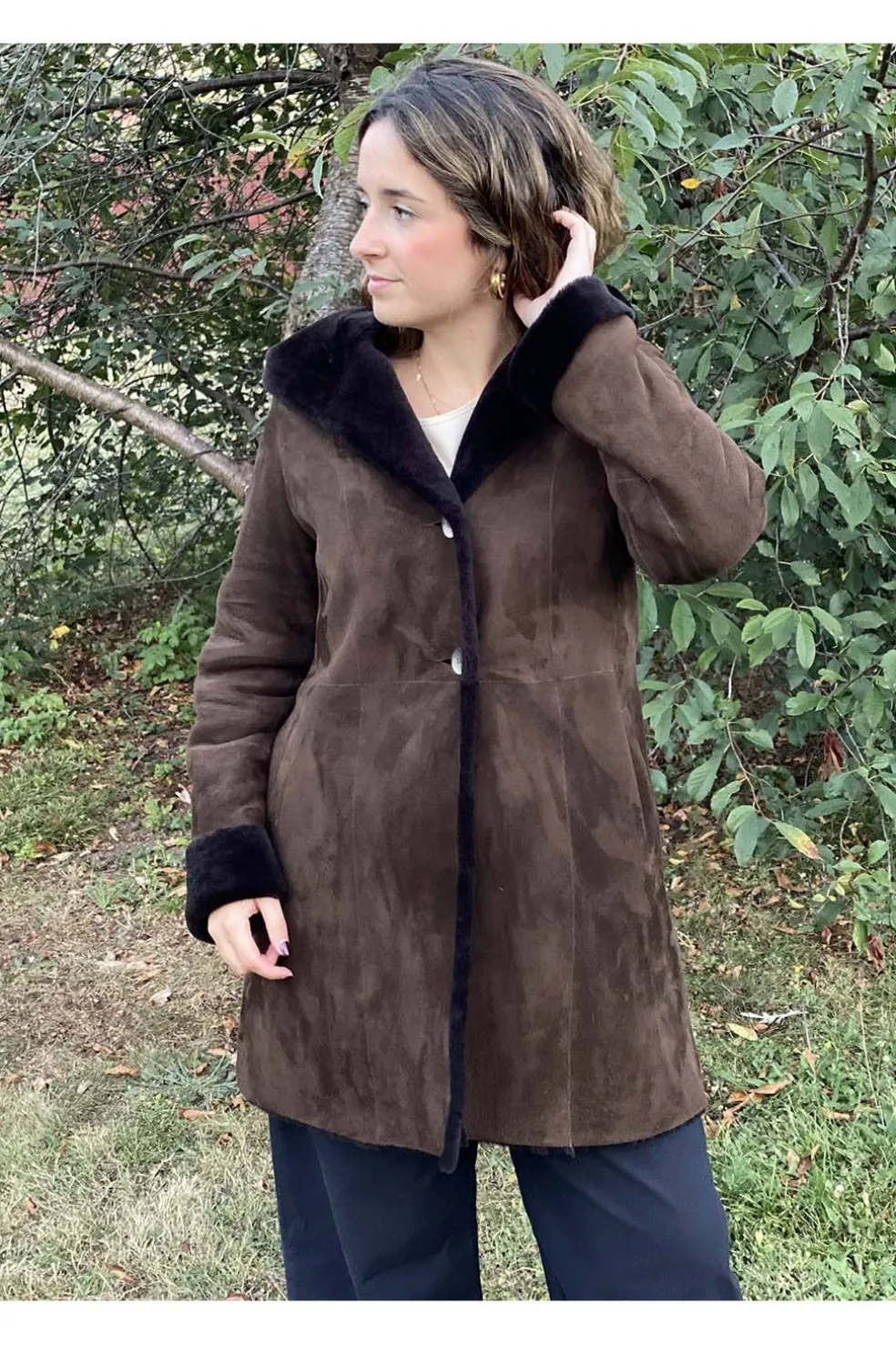 Pelliza de piel natural con forro de borreguito en contraste. Un prenda actualizada que recuerda a las prendas de piel de hace años. Piel joven y suave. Se puede fabricar por encargo.