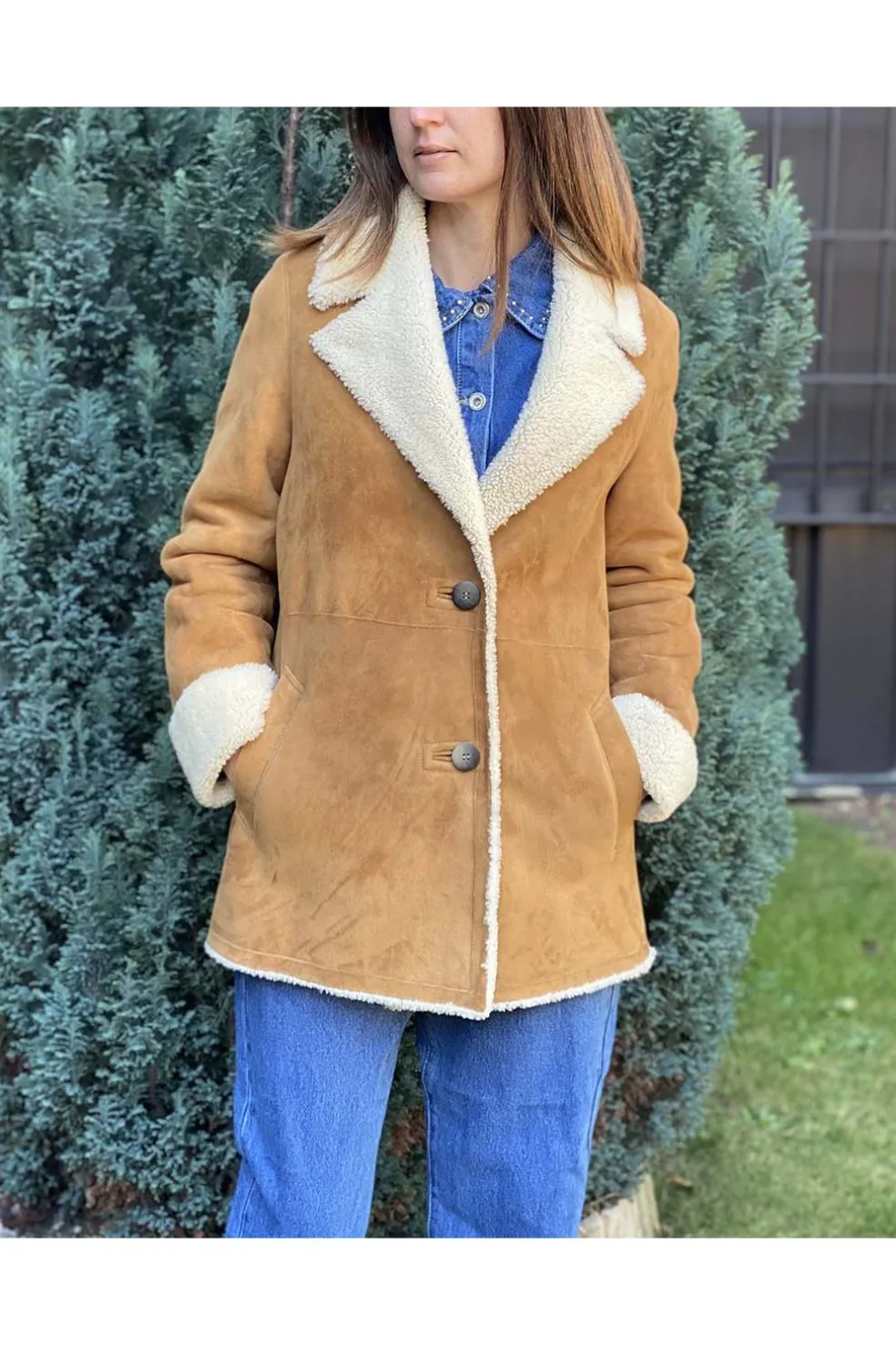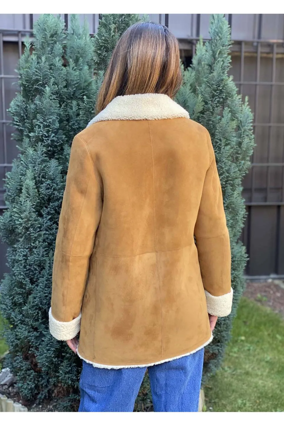 Pelliza de piel natural con forro de borreguito en contraste. Un prenda actualizada que recuerda a las prendas de piel de hace años. Piel joven y suave.