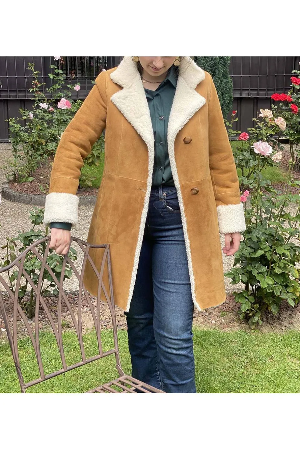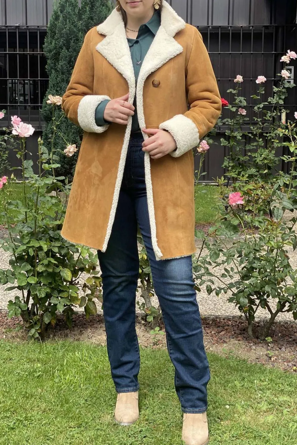 Pelliza de piel natural con forro de borreguito en contraste. Un prenda actualizada que recuerda a las prendas de piel de hace años. Piel joven y suave. Pelo rizo natural .