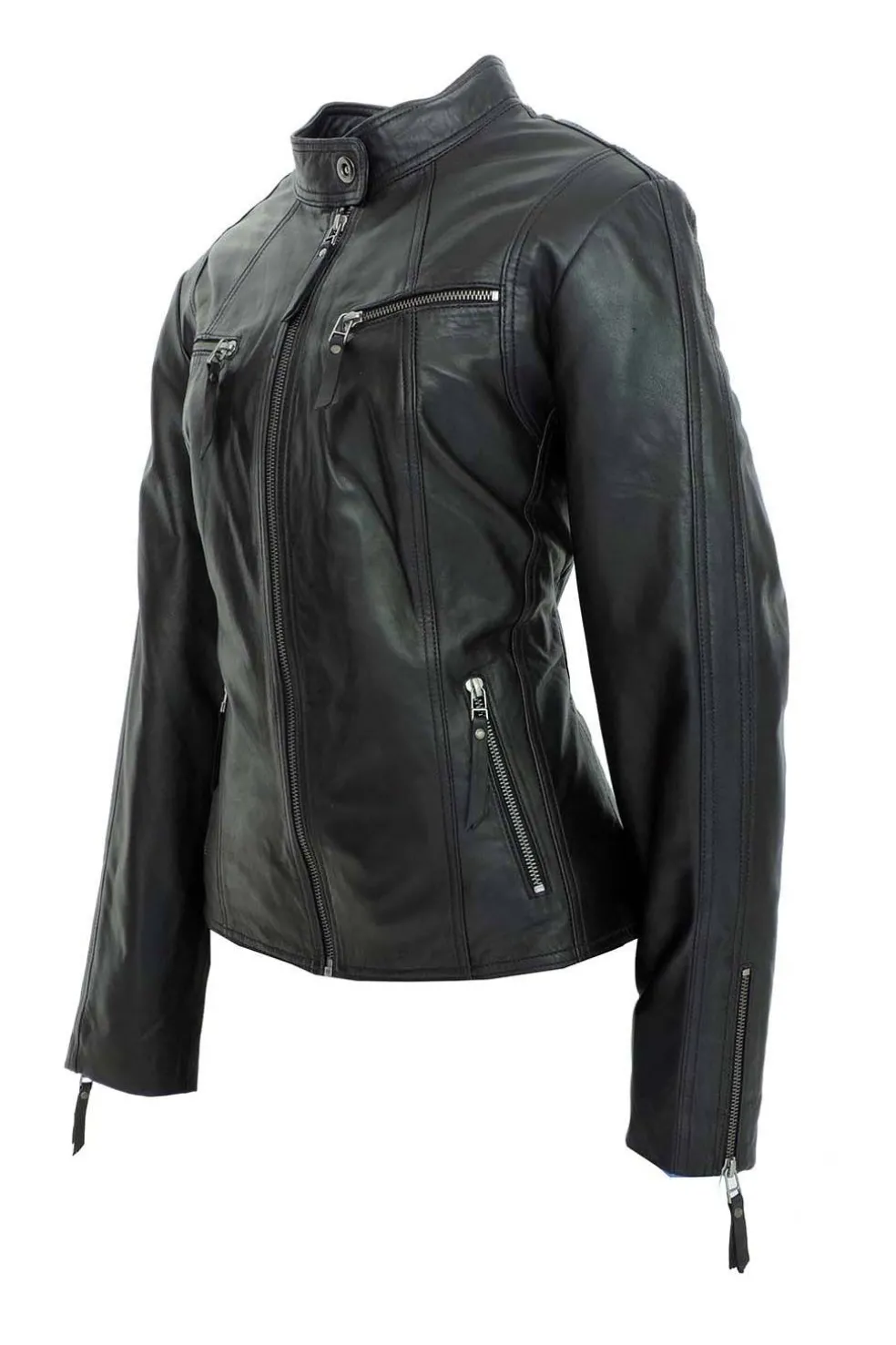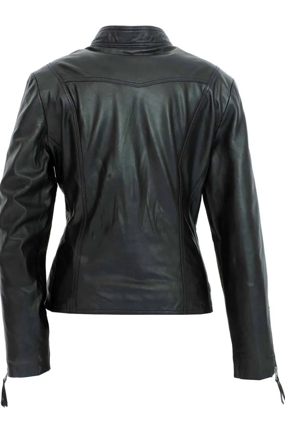 Cazadora de cuero con acabado anilina. Patronaje mas confortable para tallas más grandes.