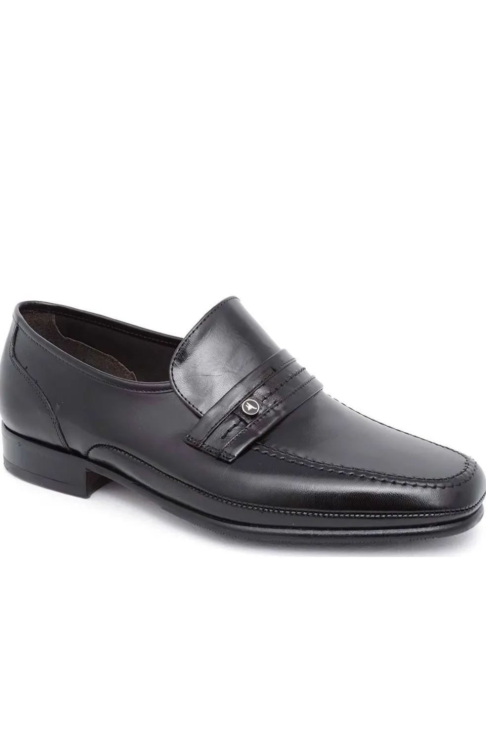 Zapato de piel ancho especial con banda en dóngola negro.